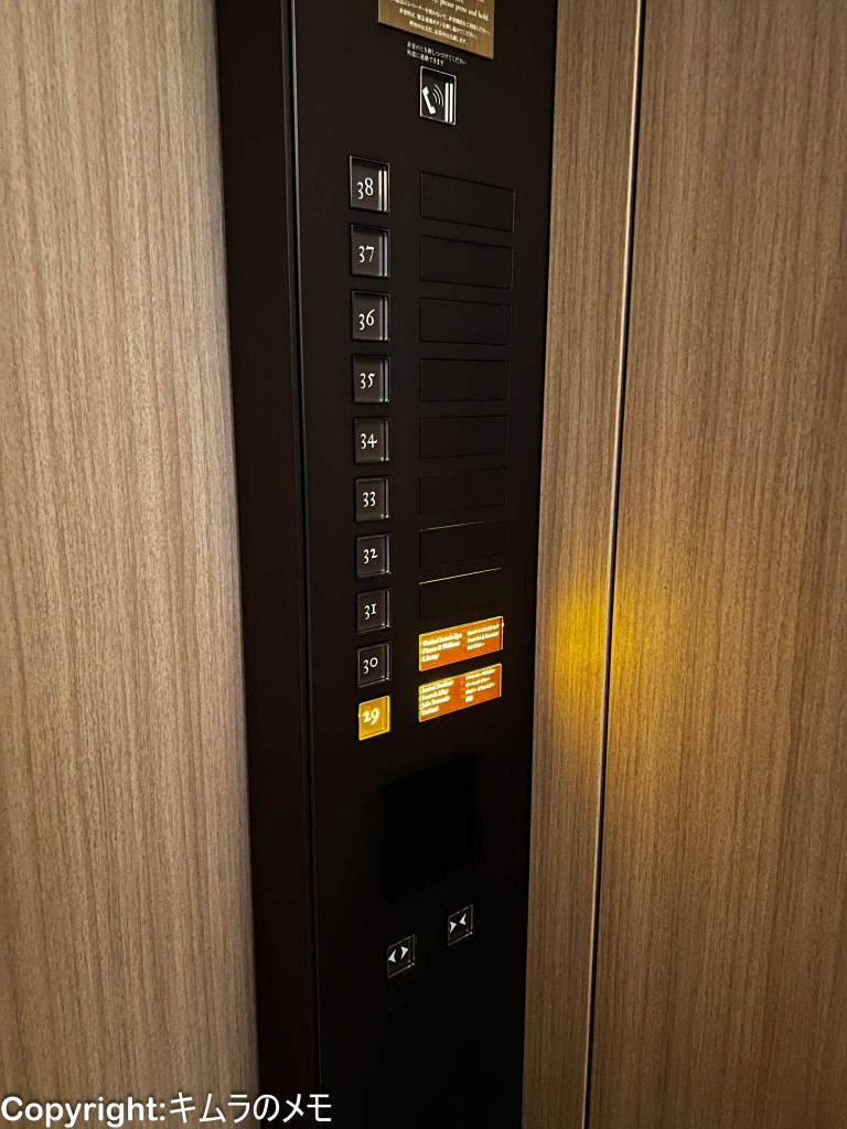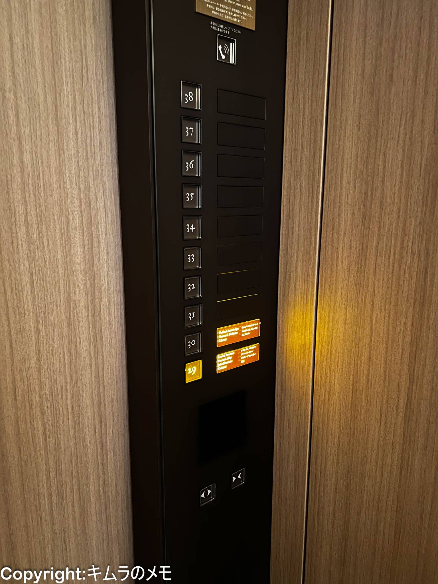 こちらのホテルは建物一棟のうち上層階のみがホテルとして使われていることもあり、客室階へは29Fのロビーフロアを経由して向かう。