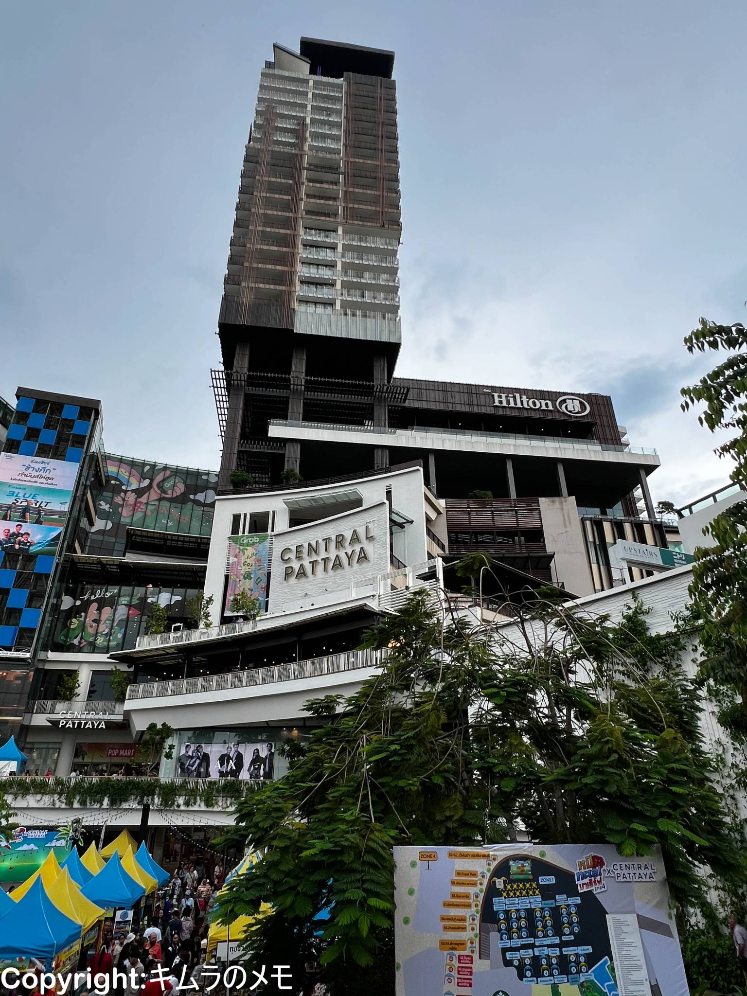 見ての通り、ヒルトンパタヤとセントラルパタヤはほぼ同じ建物となっており、上層階がホテルになっている。
