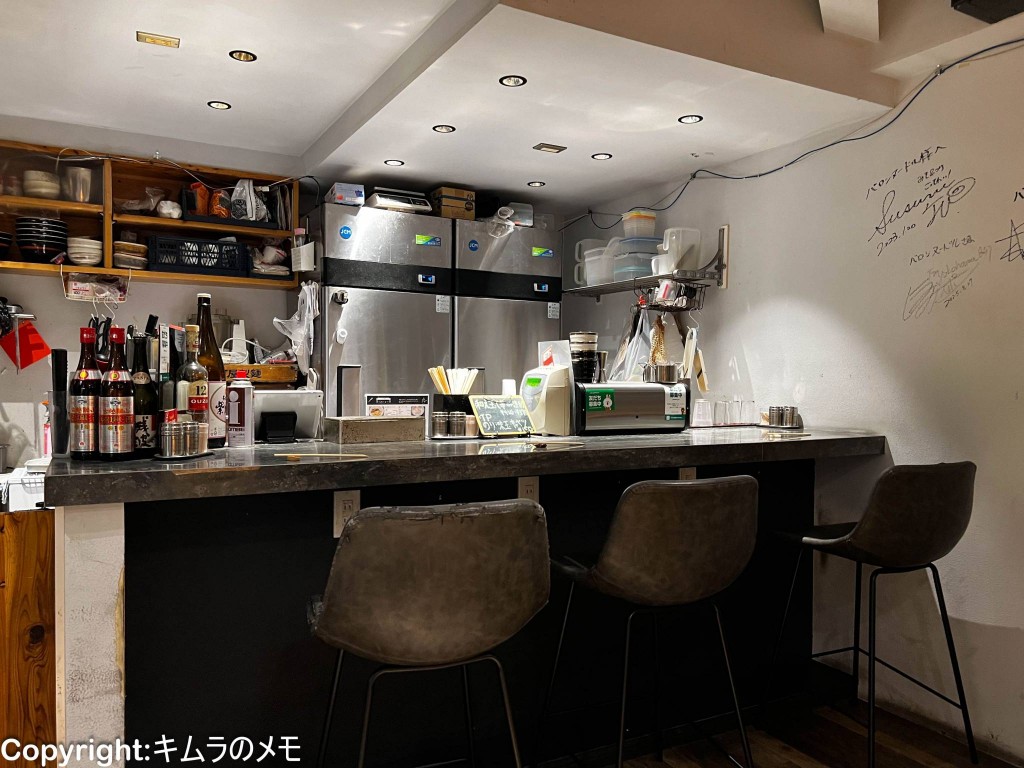 以前はバーだったのか、カウンター席がラーメン店ぽくない雰囲気。