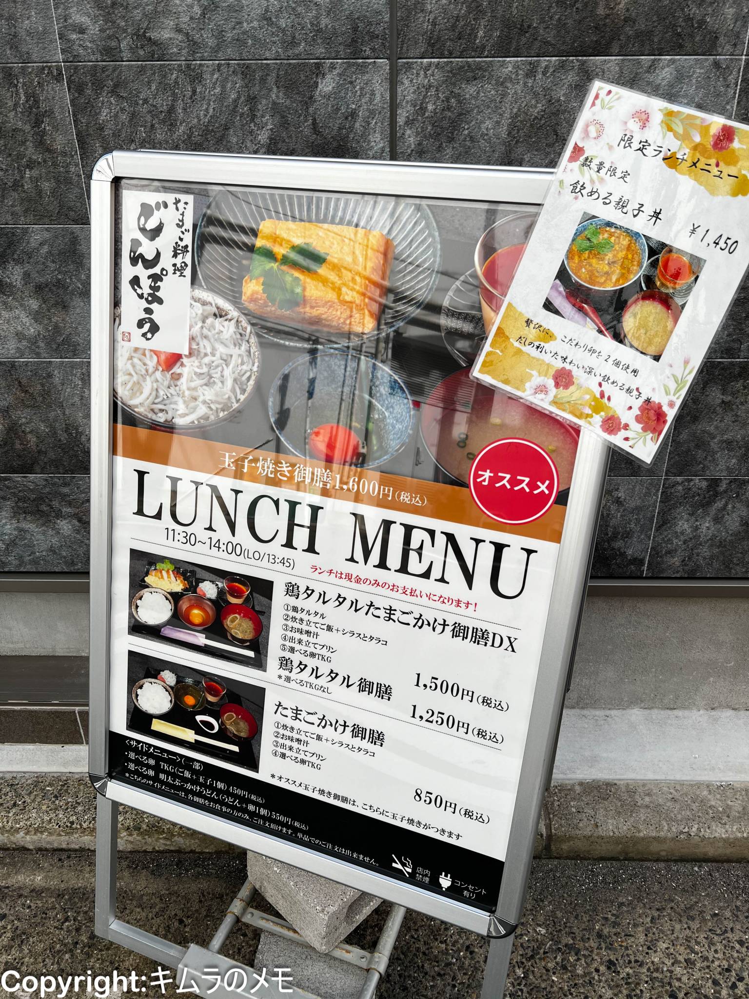 今回はランチタイムだったので、店先にはランチメニューが置かれていた。