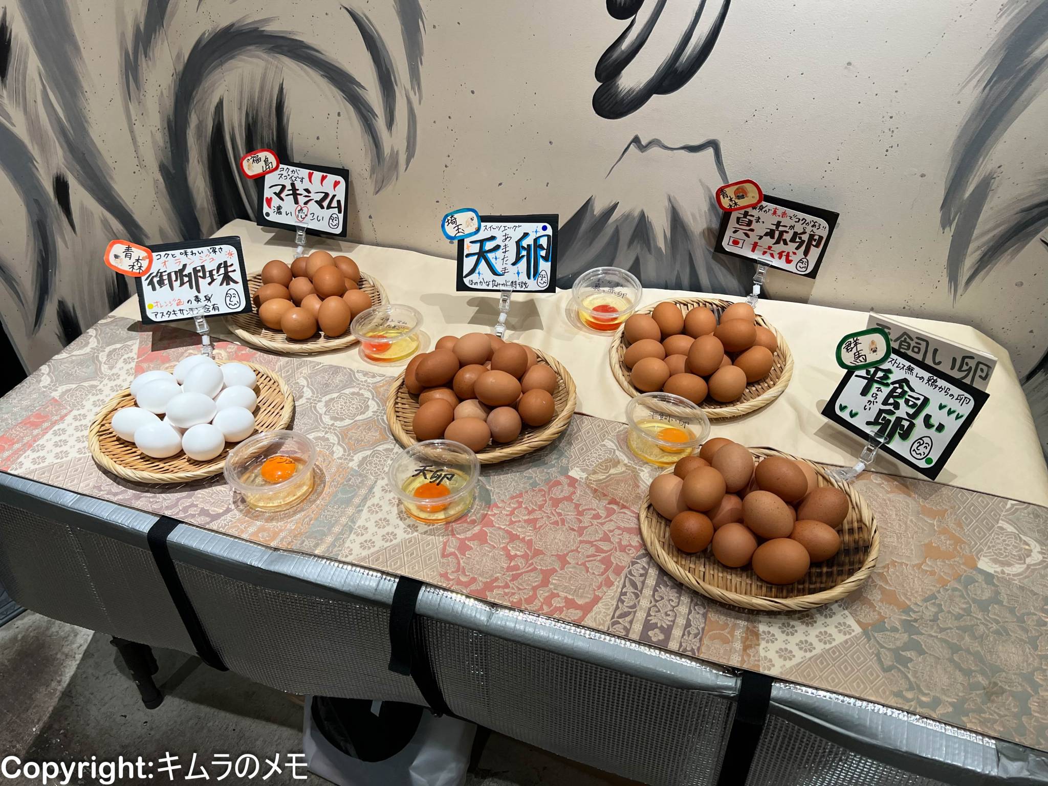 また、玉子料理専門店ということでメニューによっては数種類の生卵の中から1つを選べるのだが、そのサンプルも置いてある。