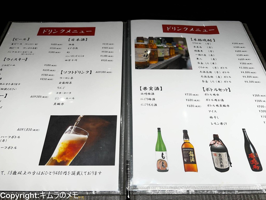アルコール類も数多く用意されており、焼酎の品揃えは比較的充実している。