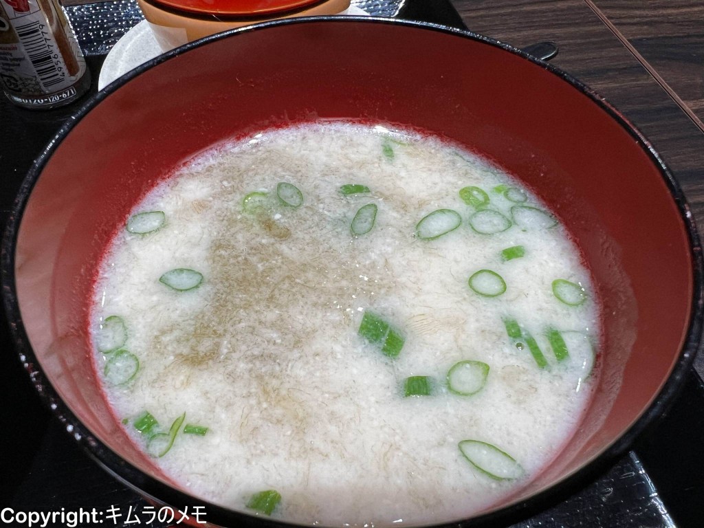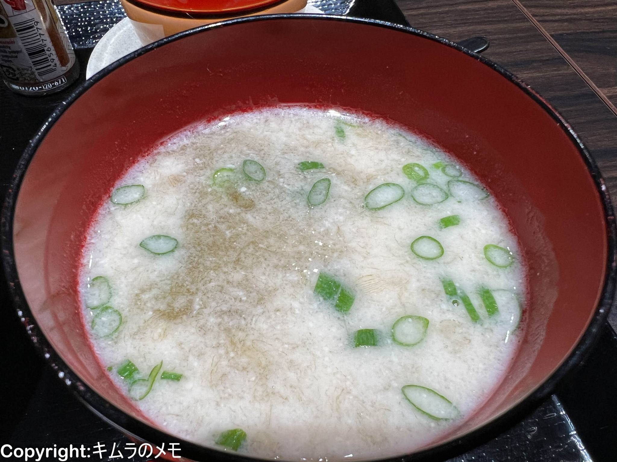 お椀はその見た目から最初は鶏スープかと思ったのだが、実は味噌汁であった。