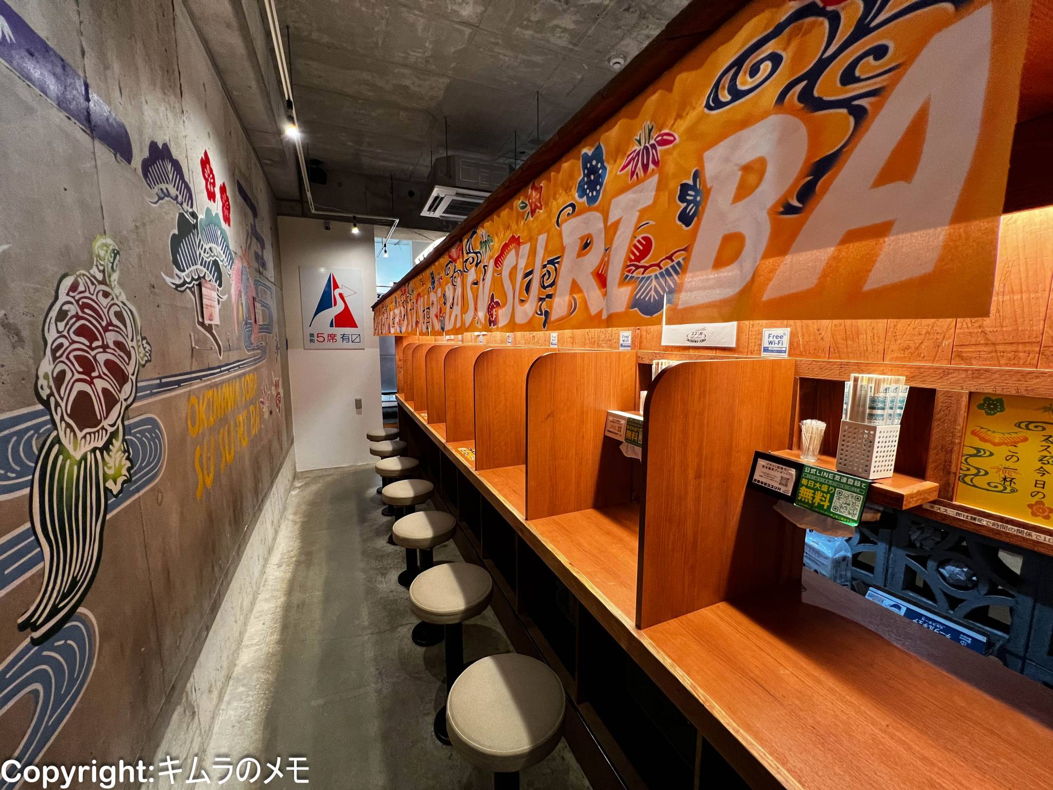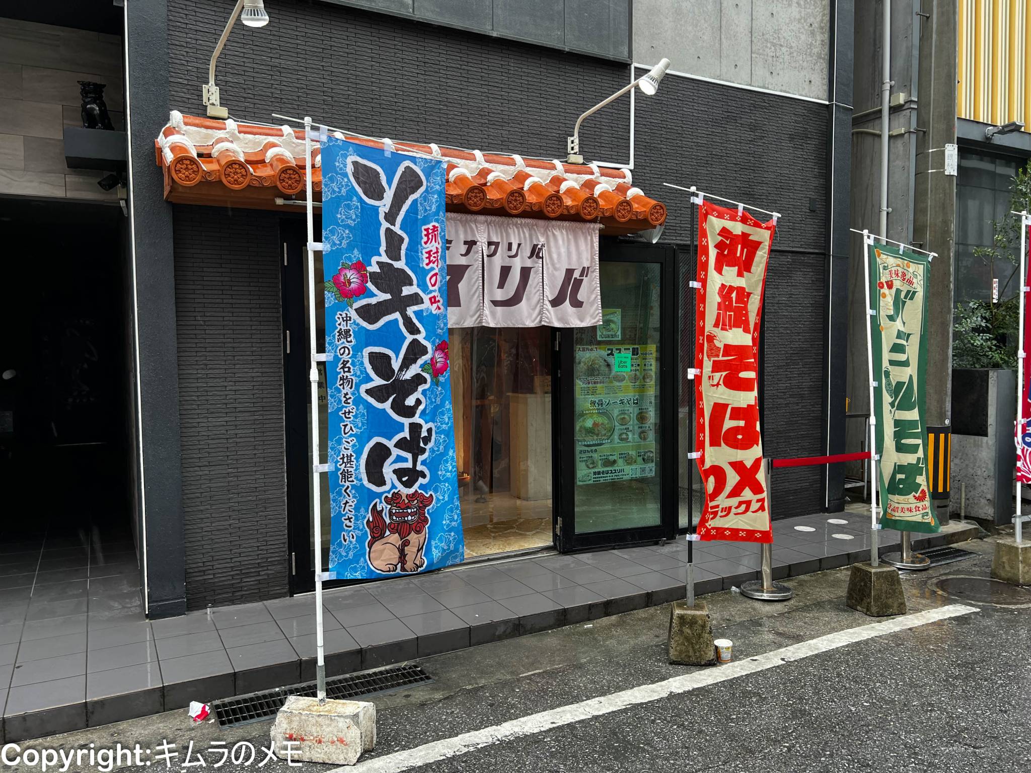 ビルの1Fに入っており、店の前には「沖縄そば」と書かれた暖簾が出されているので見逃すことはない。