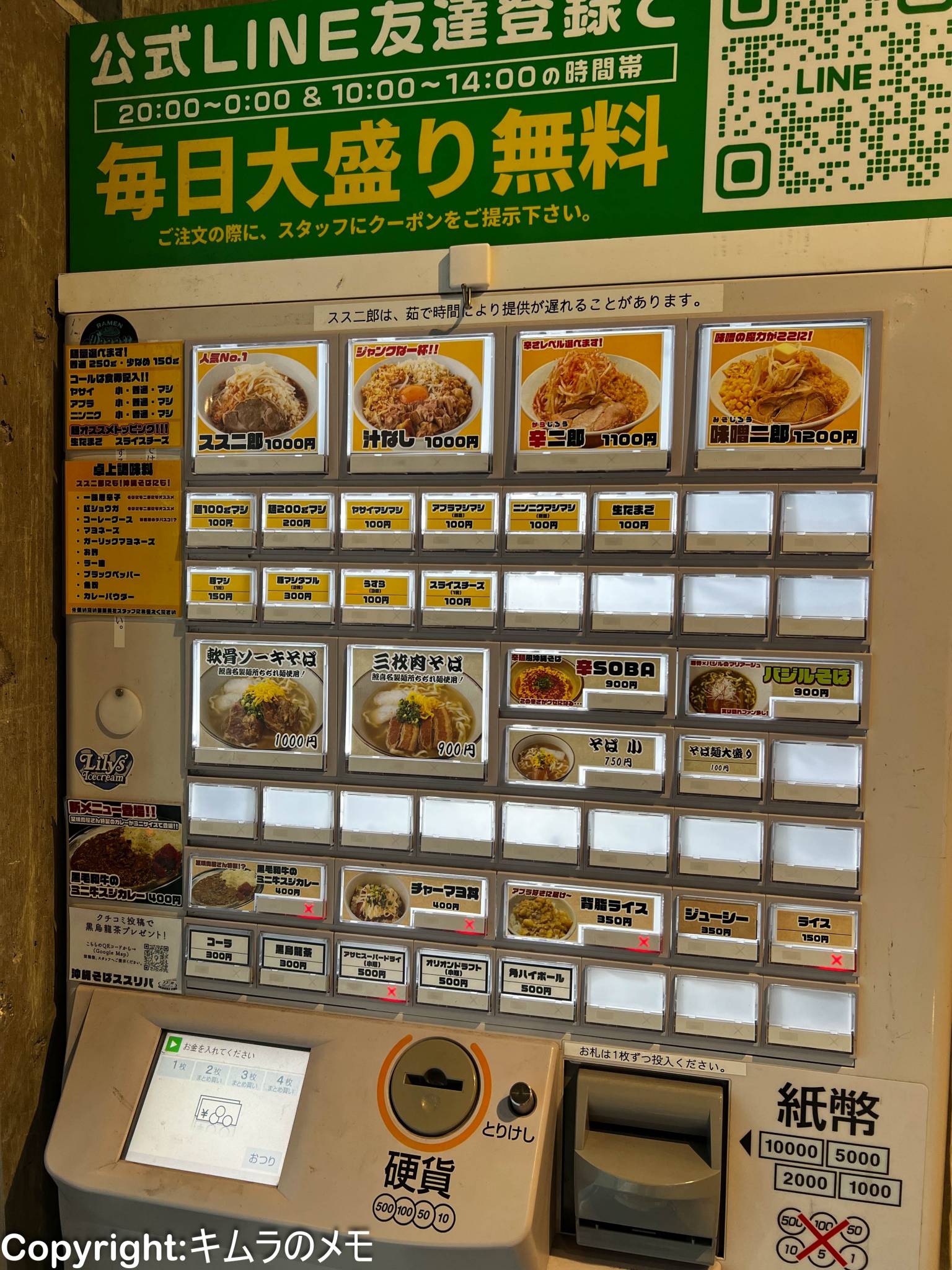 券売機は店舗入って左手にある。