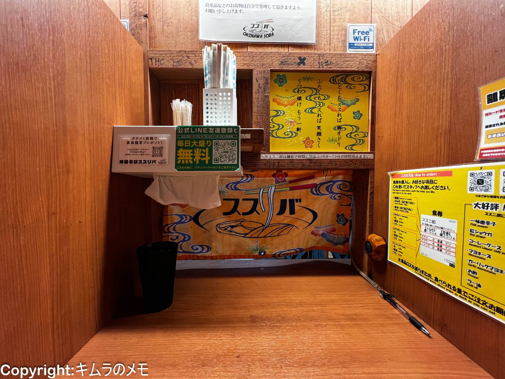 ただ、左右の席との仕切りは一蘭程がガッツリとしたものではないで、普通に会話しながら食事をすることも出来る。