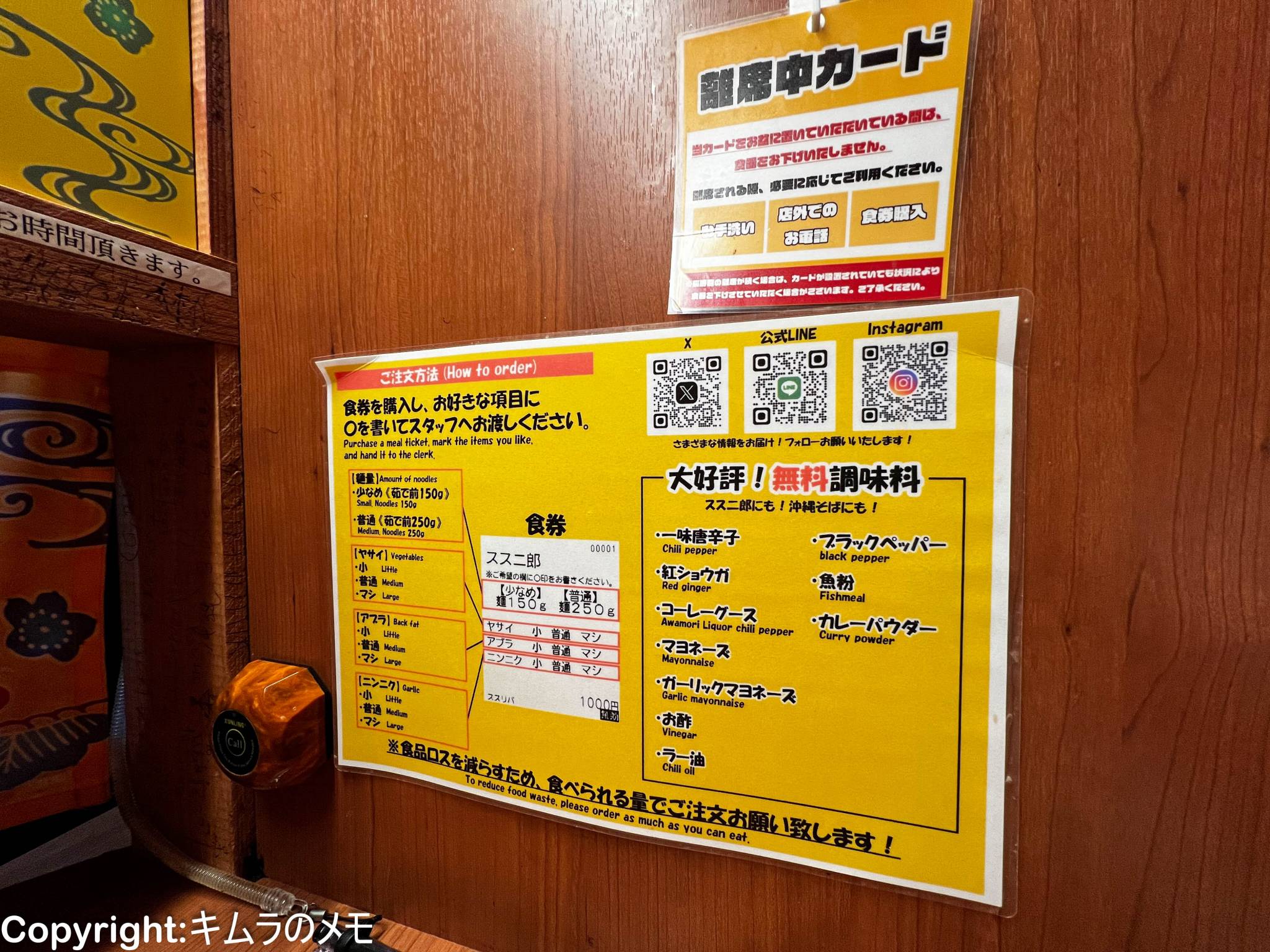 こちらは二郎系定番の、提供直前に好みをコールするのではなく、購入した食券に自分で記入して渡すスタイル。