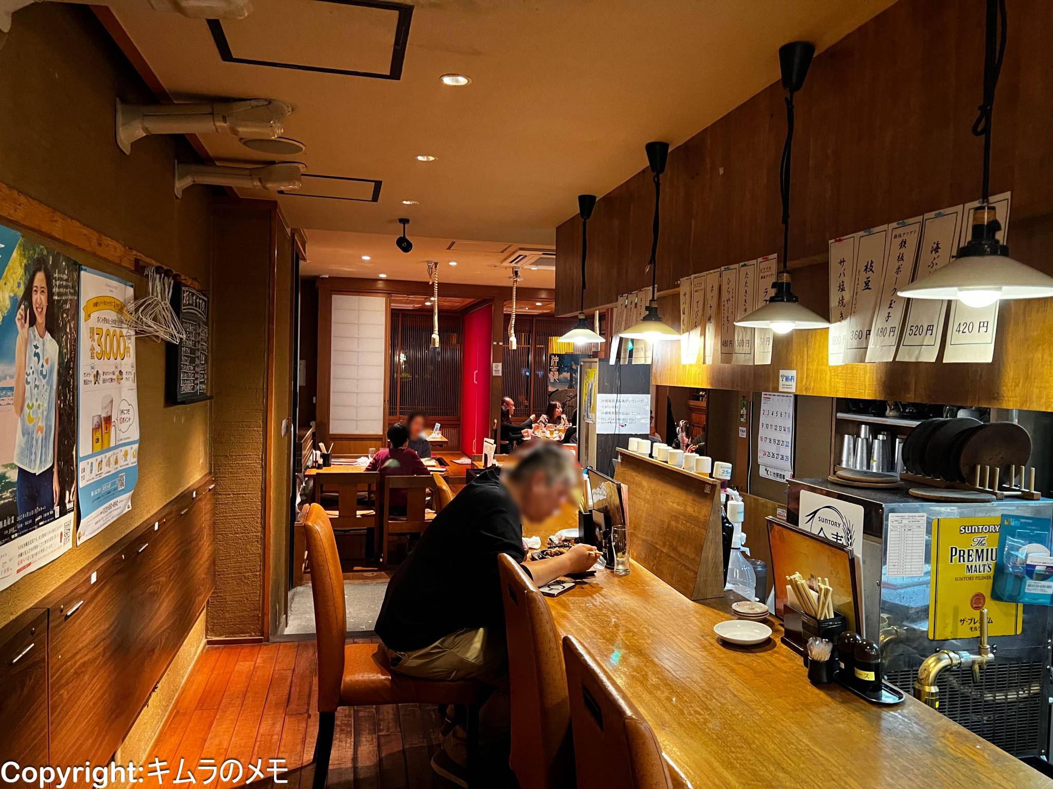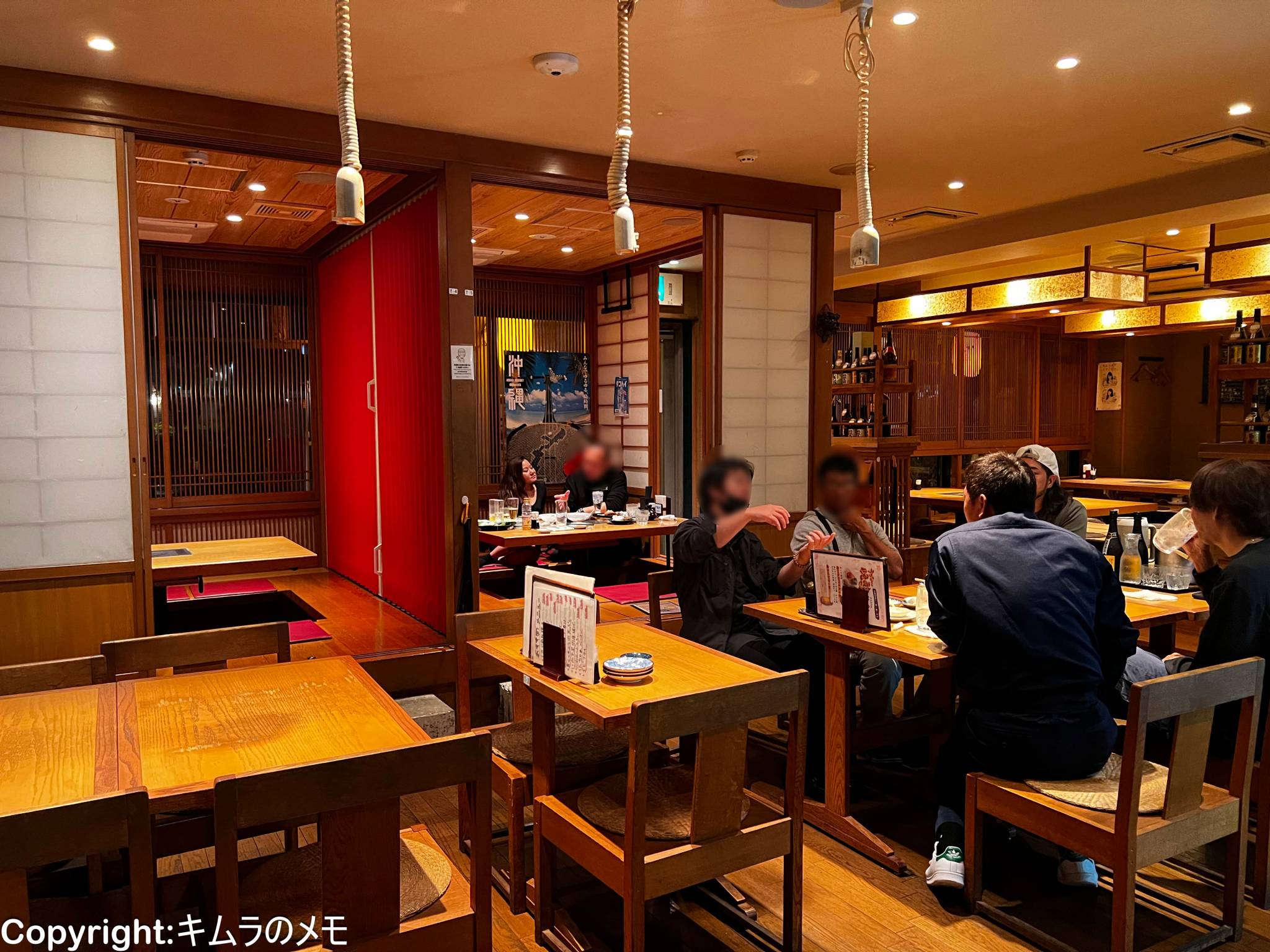 店内は掘りごたつやテーブル席、そしてカウンター席など様々なタイプの席があり、トータルキャパは60席程度とまあまあの広さ。