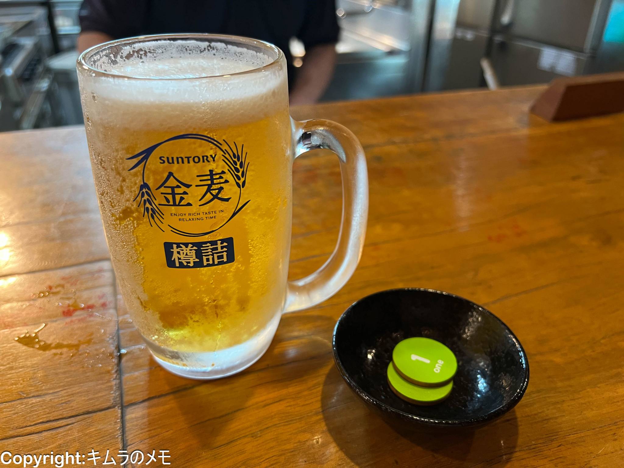金麦は通常オーダーだと490円なので、3杯飲んだら1500円。