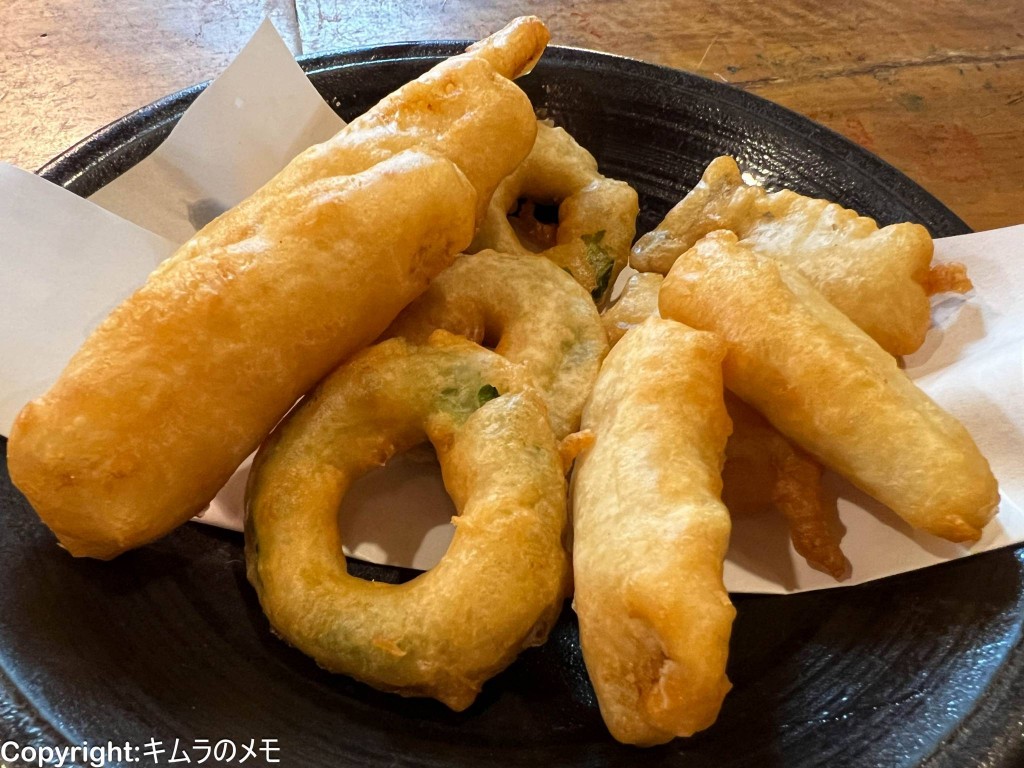 いわゆる天ぷらというよりはフリットに近いイメージで、周りはカリッと仕上げられているものの具材は程よくジューシーさが残っている。