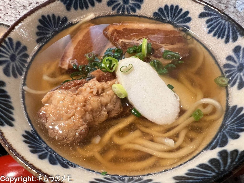 そして沖縄そばのスープだが、沖縄そば定番のカツオのダシの風味が前面に押し出されているような味わいではなく、動物系の油感もしっかりと感じられるバランスの良いスープ。