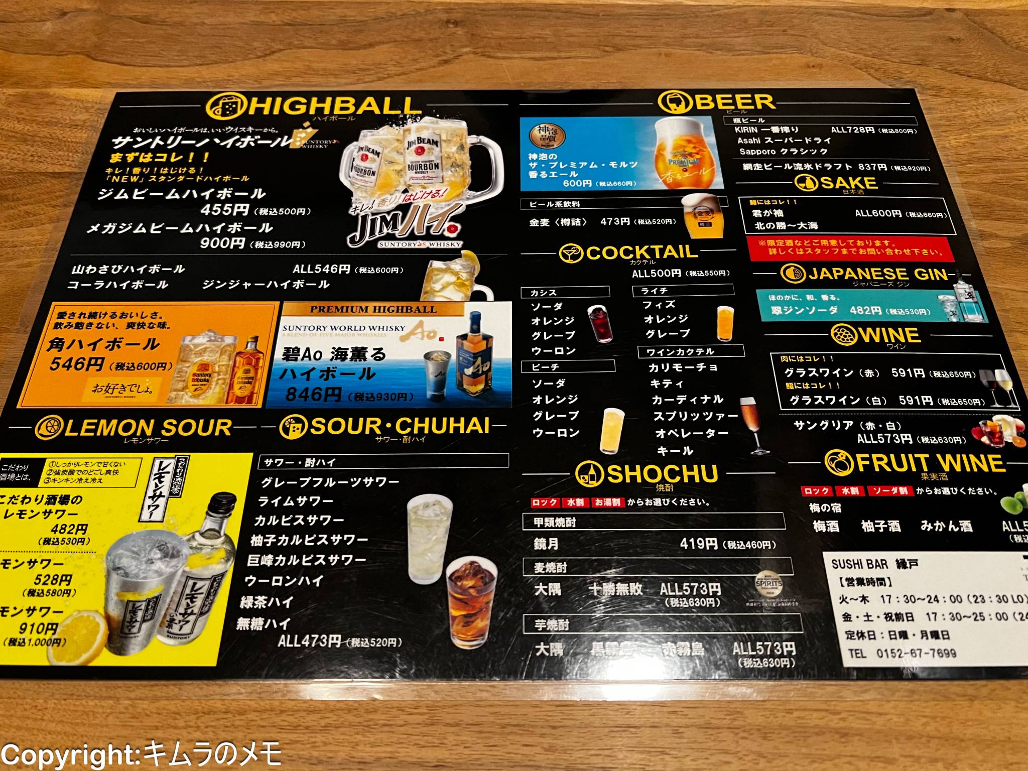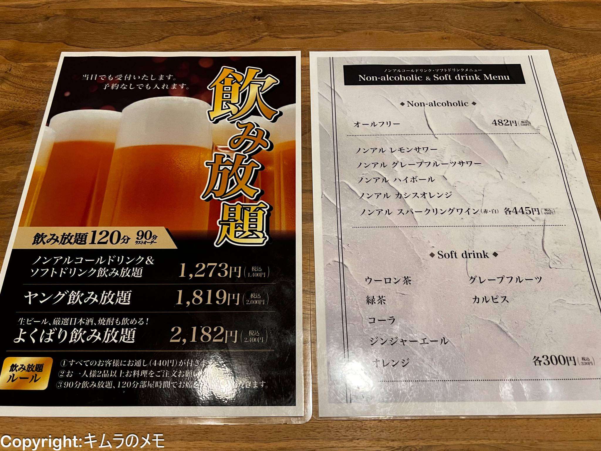 そしてこちらはドリンクメニュー。