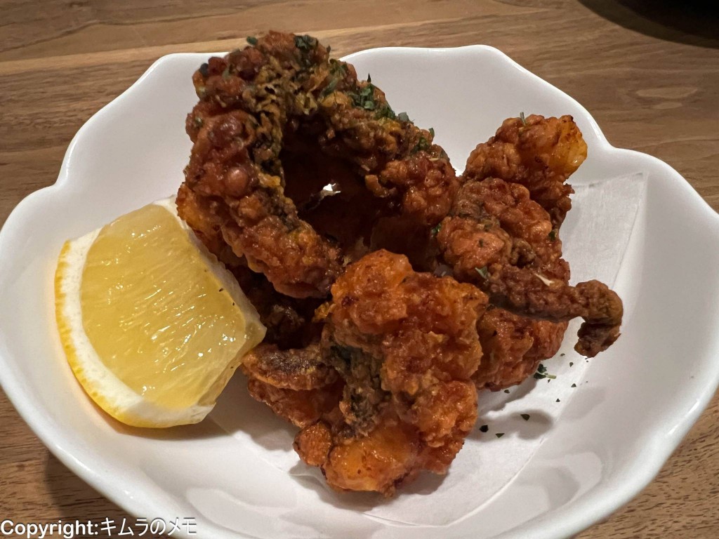 タコの唐揚げよりもカリカリに仕上げられており身はジューシー。