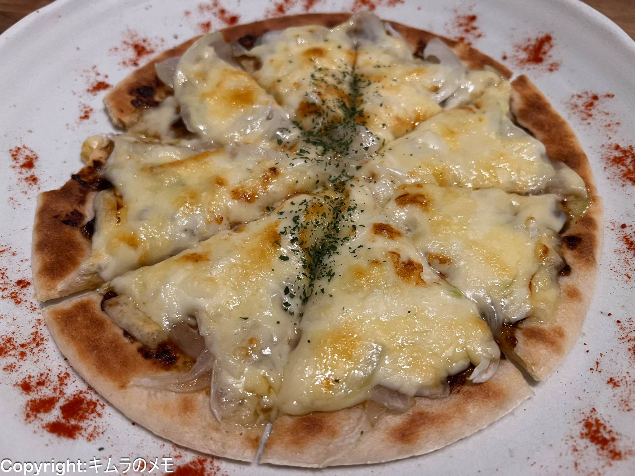 予想はしていたが、本格的なピザというよりは、出来合いの生地にトッピングを乗せて焼いたものという感じ。