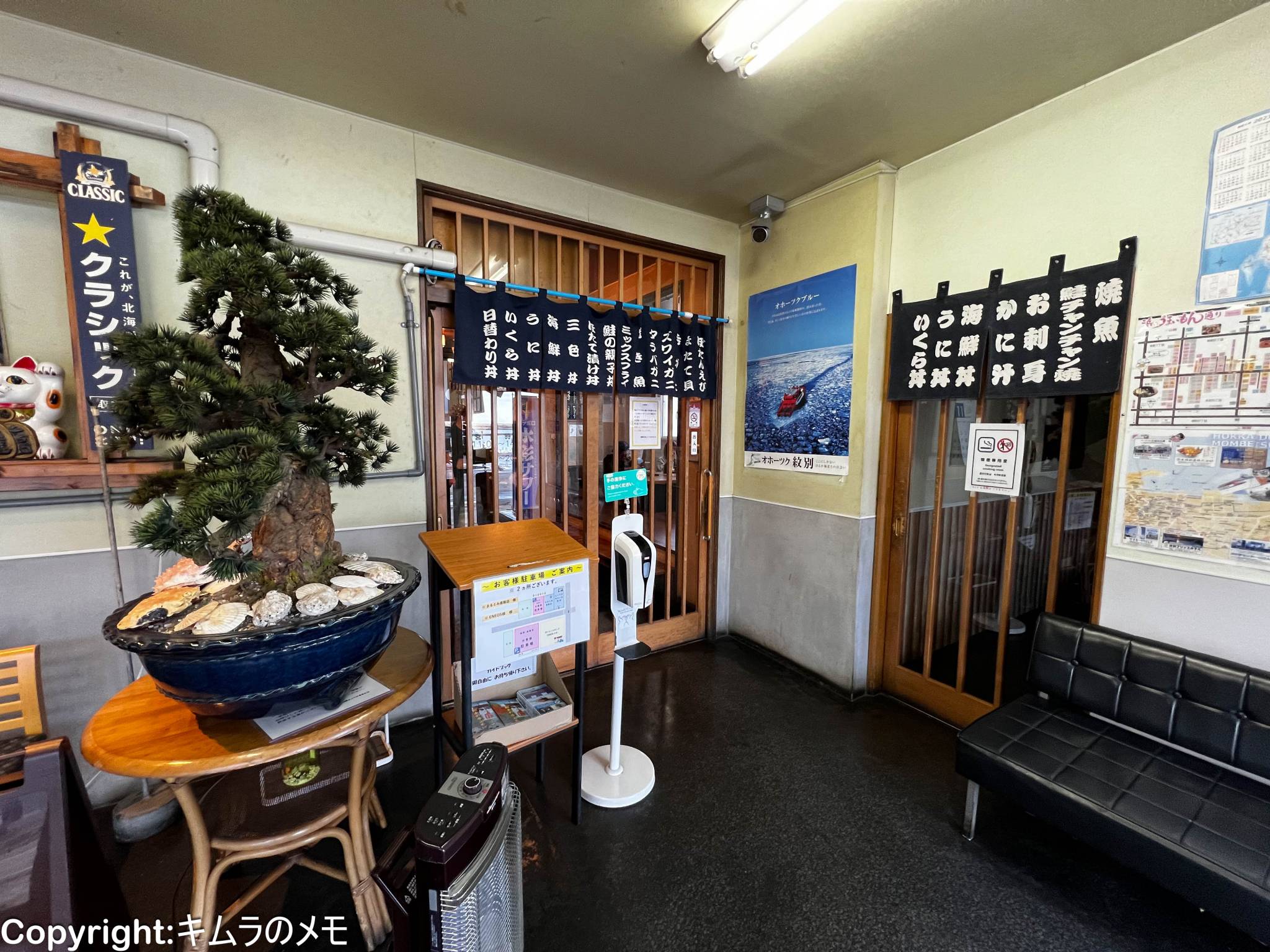 雪国仕様ということで、外に接している入口を入った先に待合スペースがあり、店舗はさらにその先の扉をくぐった先にとなる。