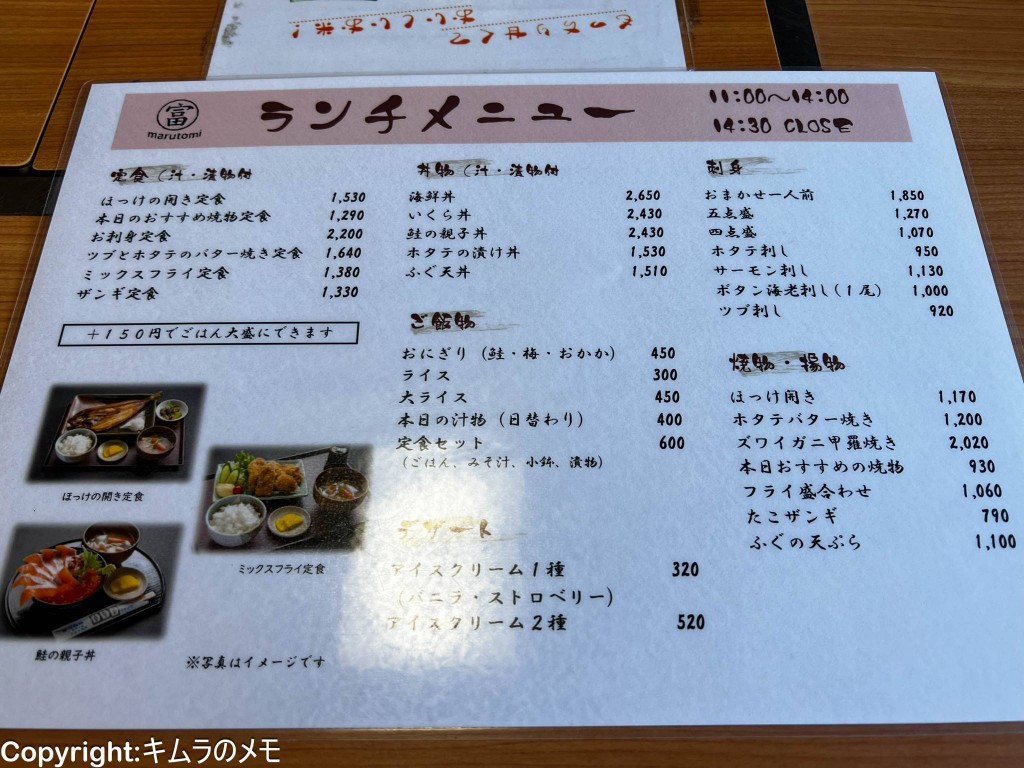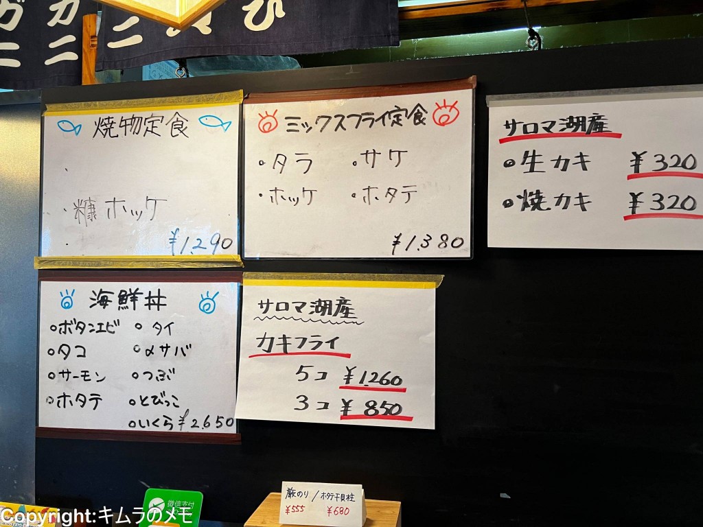 こちらのお店は水産加工会社直営のお店ということもあり、メニューは当然海鮮系が中心となる。