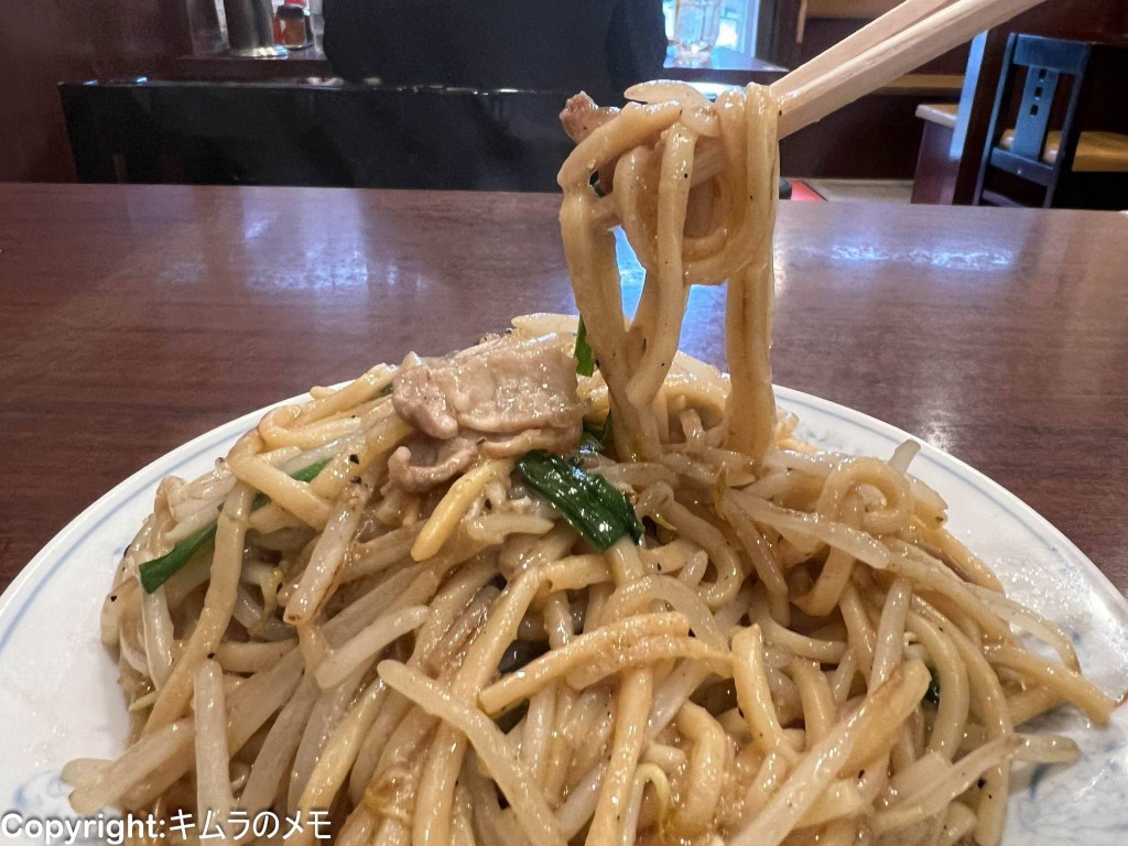 料理そのものはシンプルにもやしとニラと豚肉を使っており、そこにたっぷりの刻みニンニクの強烈な風味と胡椒を加え、程よい餡掛け感と中華旨味調味料の味わいがバランスよくブレンドされている。