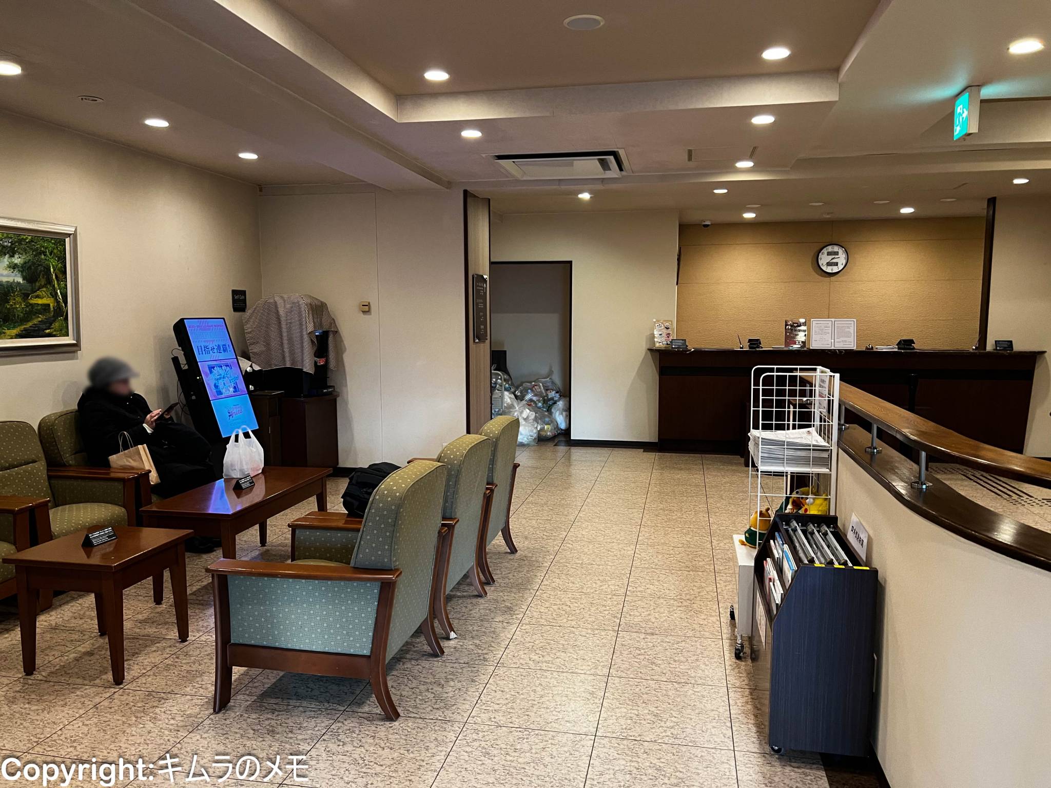 ソファーが置いてあるもののそこまで広いという感じではなく、いわゆる一般的なビジネスホテルのロビーという感じ。