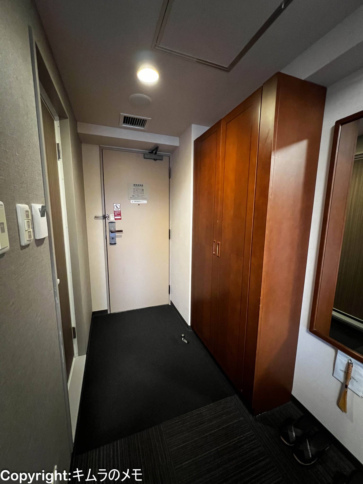 今回は一番広い部屋で予約したこともあり、入口すぐ横にはクローゼットが設置されている。
