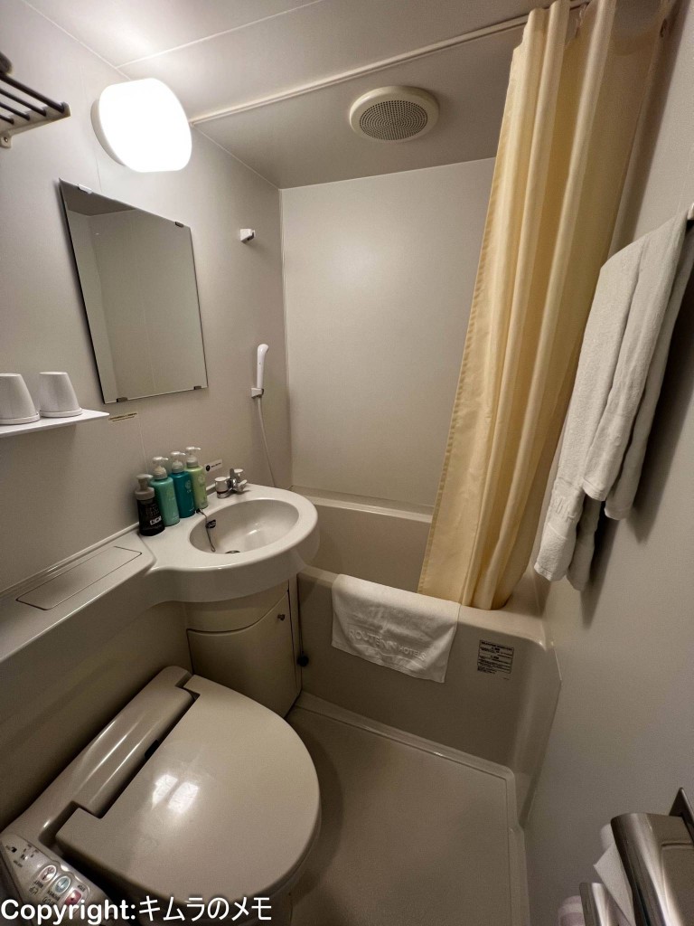 さて水回りだが、一般的なビジネスホテルでよくみられるユニットタイプのものが設置されている。