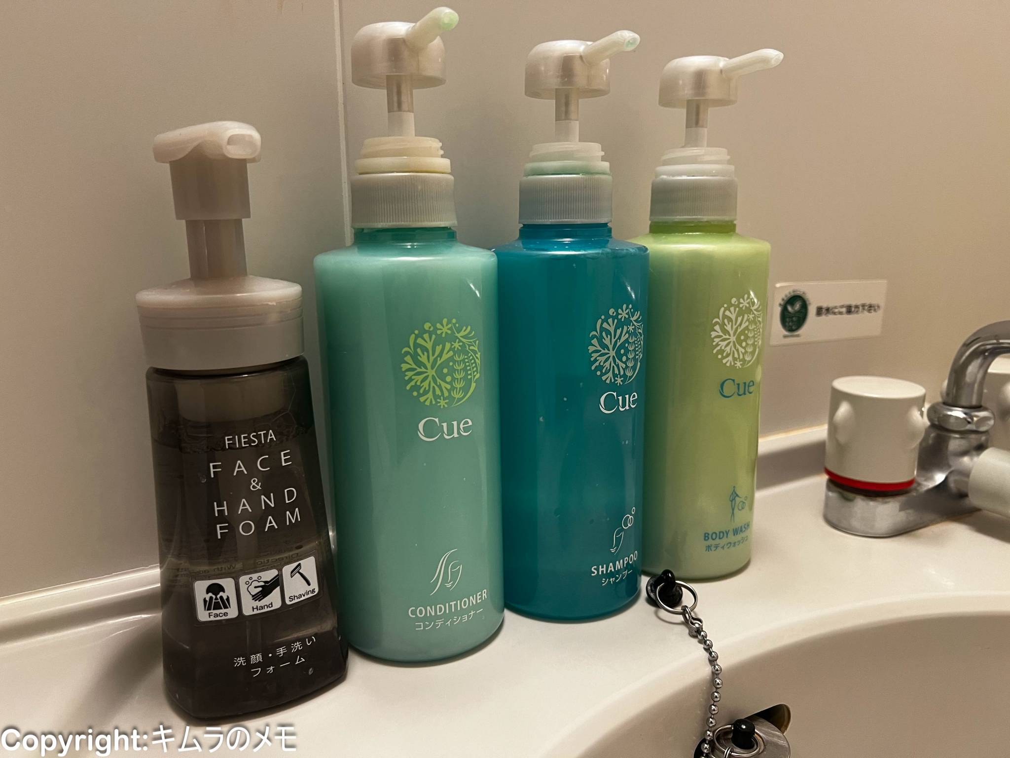 ルートインとして採用している「Cue」という花王の業務用のものとなっており、洗いあがりは可もなく不可もなしと言ったところ。
