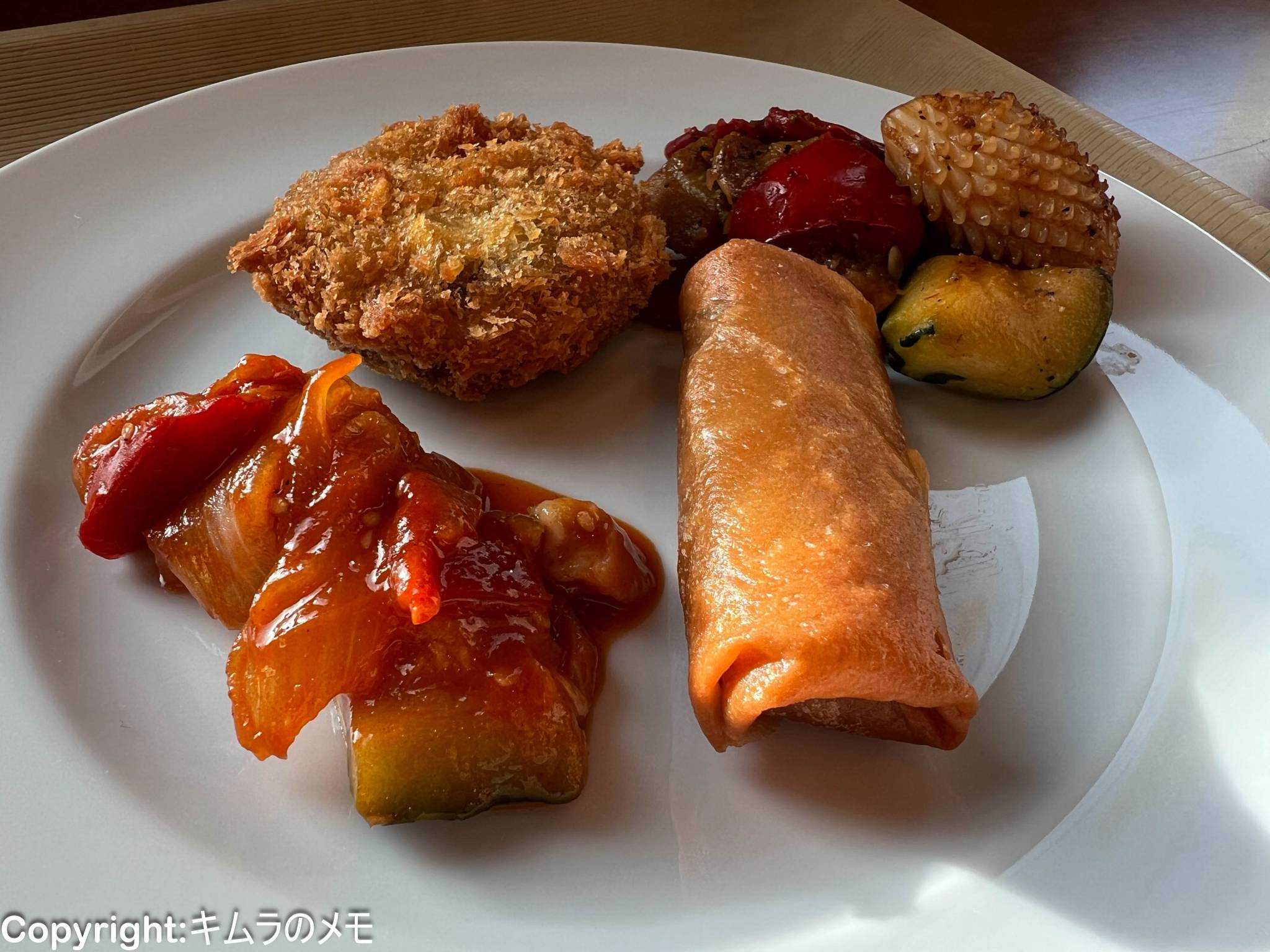 朝食ビュッフェ定番の卵料理やソーセージに加えて、揚げ物など、なかなかの充実度。
