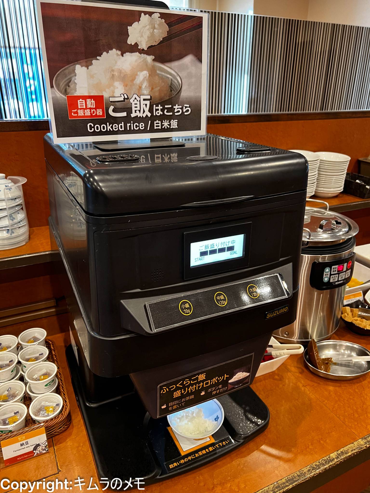 ご飯は自動で盛られるタイプの機械が用意されている。