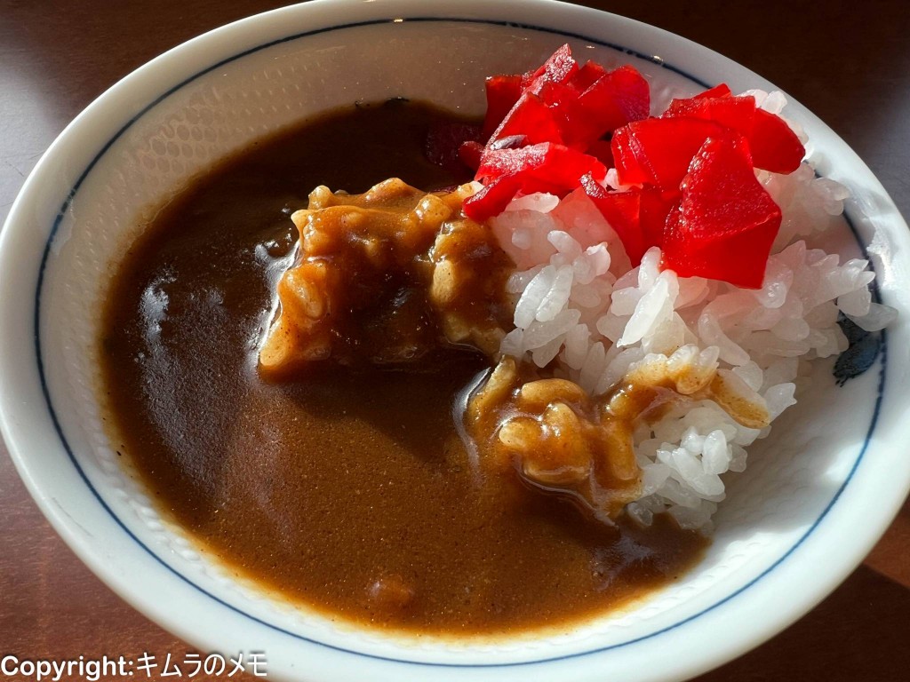 ビーフの風味はあるが、具材ゴロゴロ系ではなくルーの味わいを楽しむタイプ。