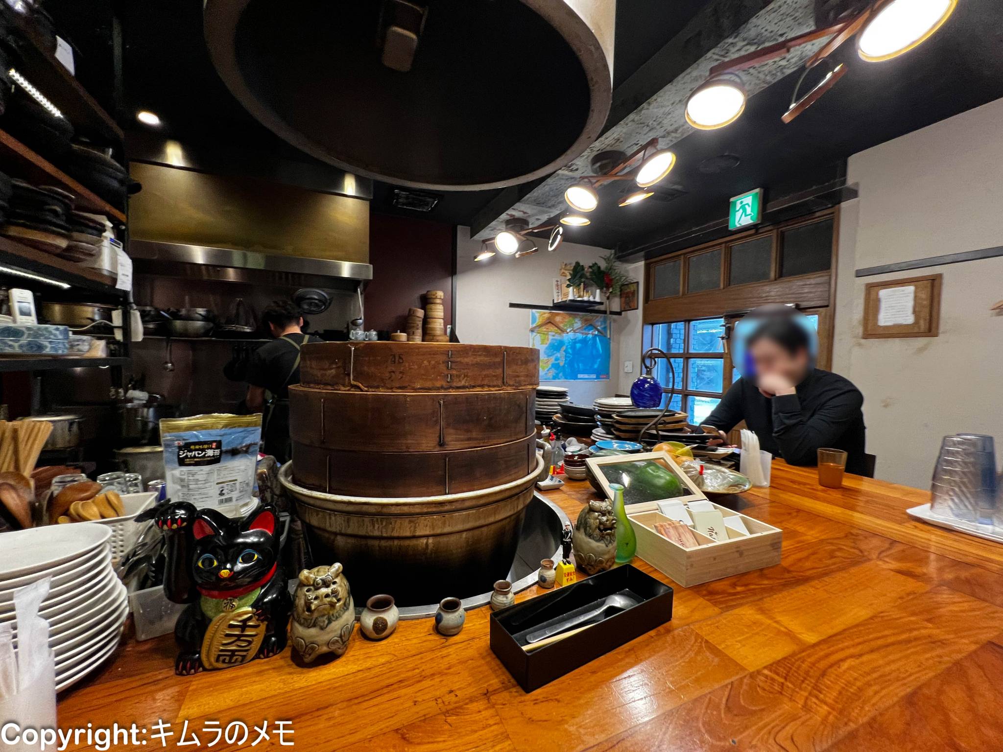 大きな蒸し器が鎮座しており、調理具兼インテリアという雰囲気。