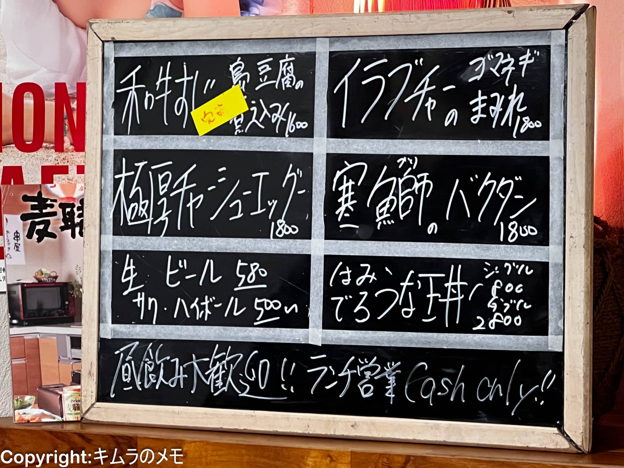 メニューはこちらの店のランチタイムで定番として提供しているものに加えて日替わり・数量限定のものがあるよう。