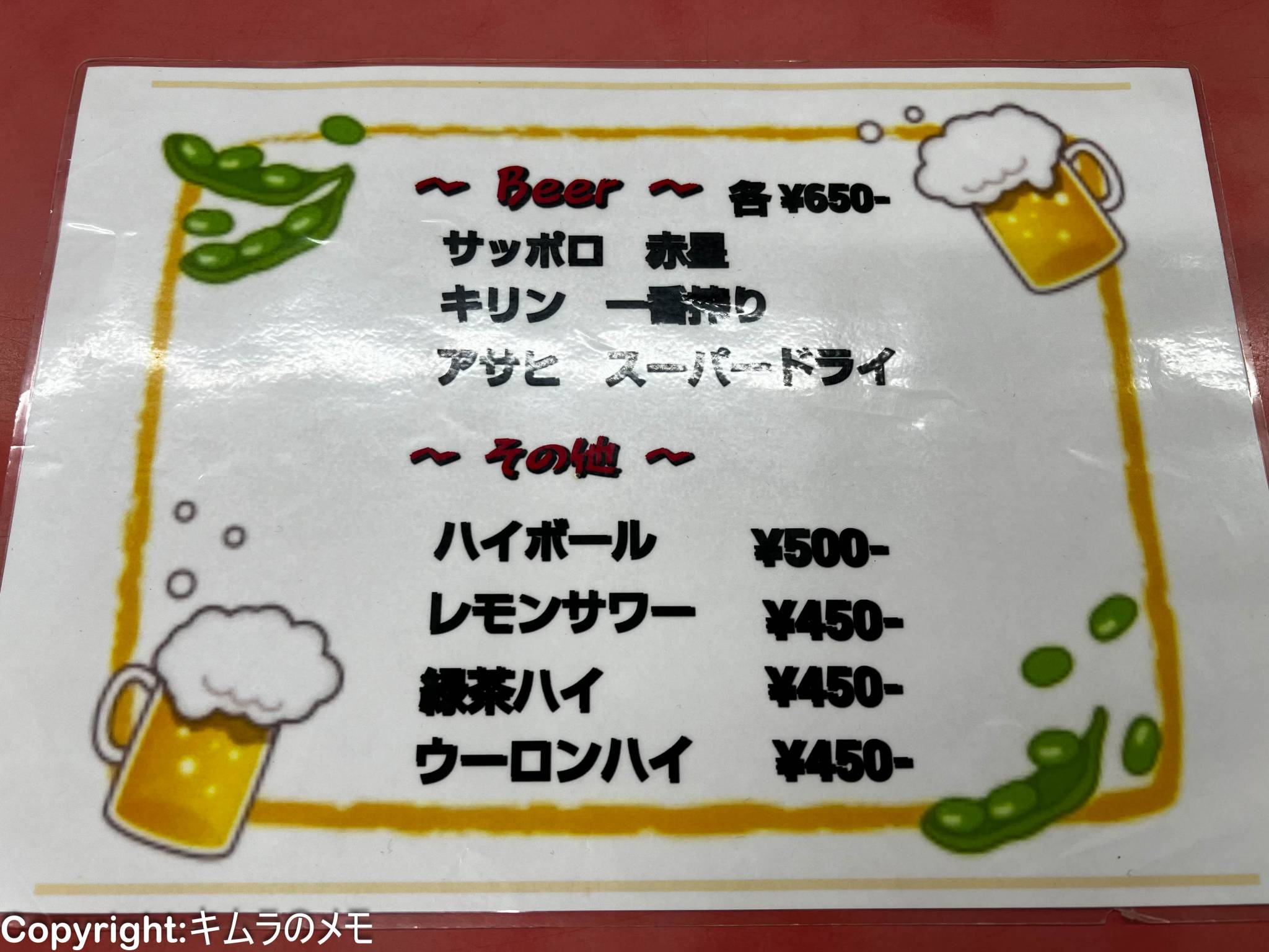 カウンター席用の椅子だったり、メニューが書かれている黄色の札だったり、昔からの町中華という雰囲気。