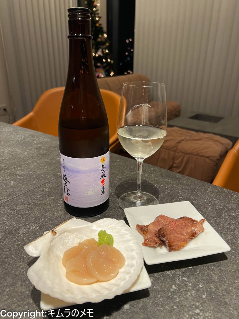 この日に既に食事を済ませていたので、おつまみとして毎度おなじみの野付産ホタテや北海道牛の赤身焼肉、そして興部町で購入したノースプレイスファームのチーズなどと合わせてみた。