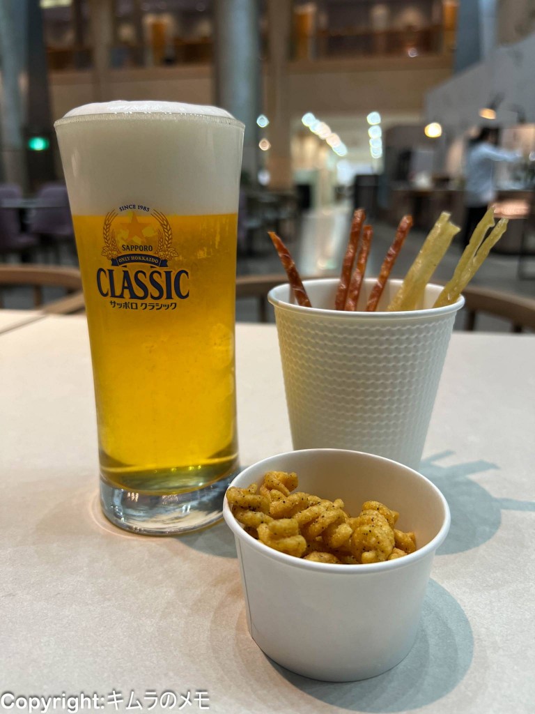 ビールは北海道ということでサッポロクラシックの他、計3種類が提供されている。