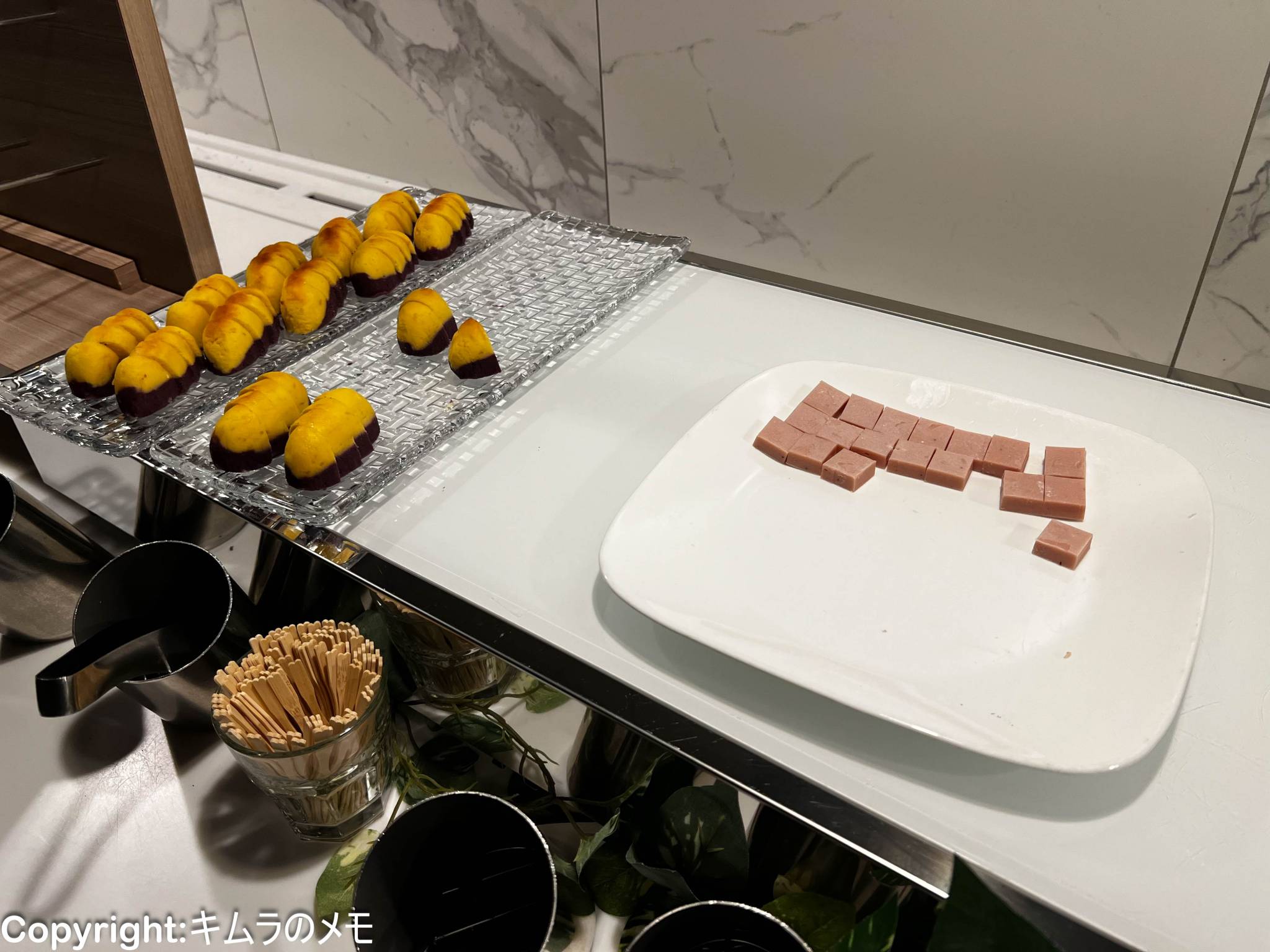 その他にはチョコレートやスイートポテトなども提供され、無料ラウンジということを考えるとかなり嬉しい品揃え。