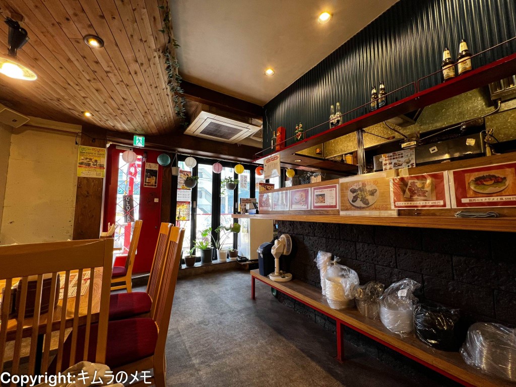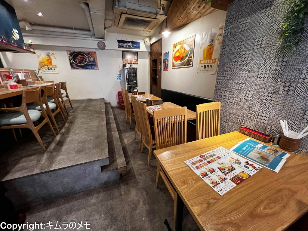 店内は壁にタイルが貼られていたり、4席だけあるカウンター席が一段高い場所にあったりと、街中でよく見かけるインド・ネパール系の料理店とは大きく趣向の異なるオシャレな造り。