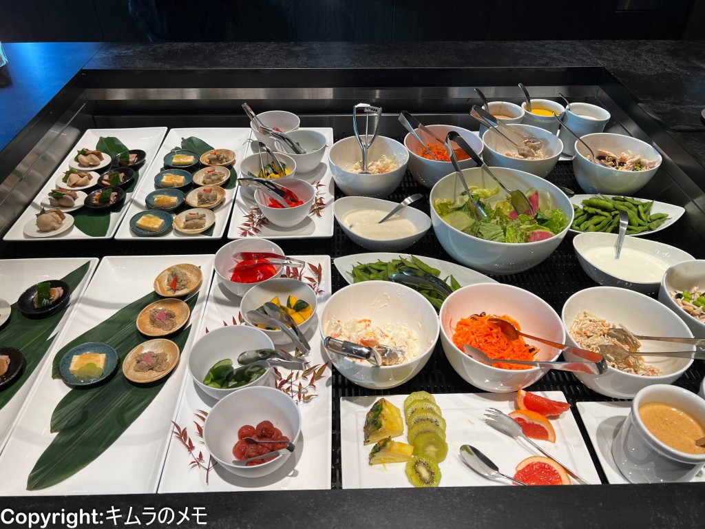 サラダやフルーツを中心に、前回同様に小鉢料理が提供されている。