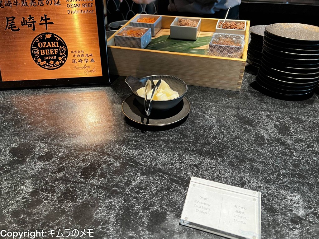 とは言え、公式ホームページ等で大々的に宣伝されている握りたての寿司の提供はされておらず、その代わりにおにぎりがライブクッキングコーナーで提供されていた。
