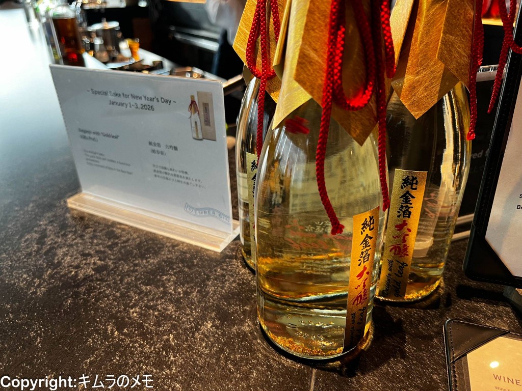 そしてこの日は新年ということで、新年用に岐阜の舩坂酒造がつくる「純金箔入り 大吟醸」(市価5000円程度)が用意されていた。