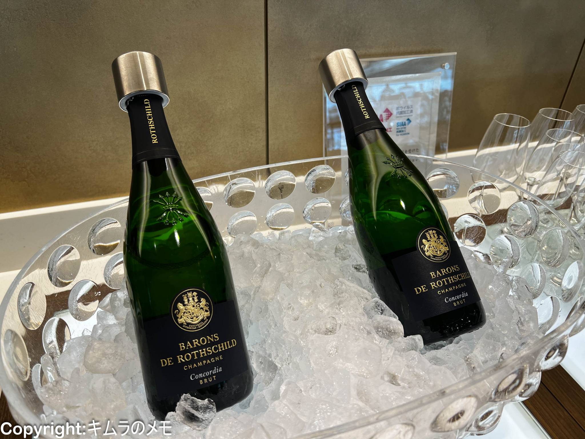 泡はフランスのシャンパン「バロン ド ロスチャイルド ブリュット」(市価7000円程度)が提供されていた。