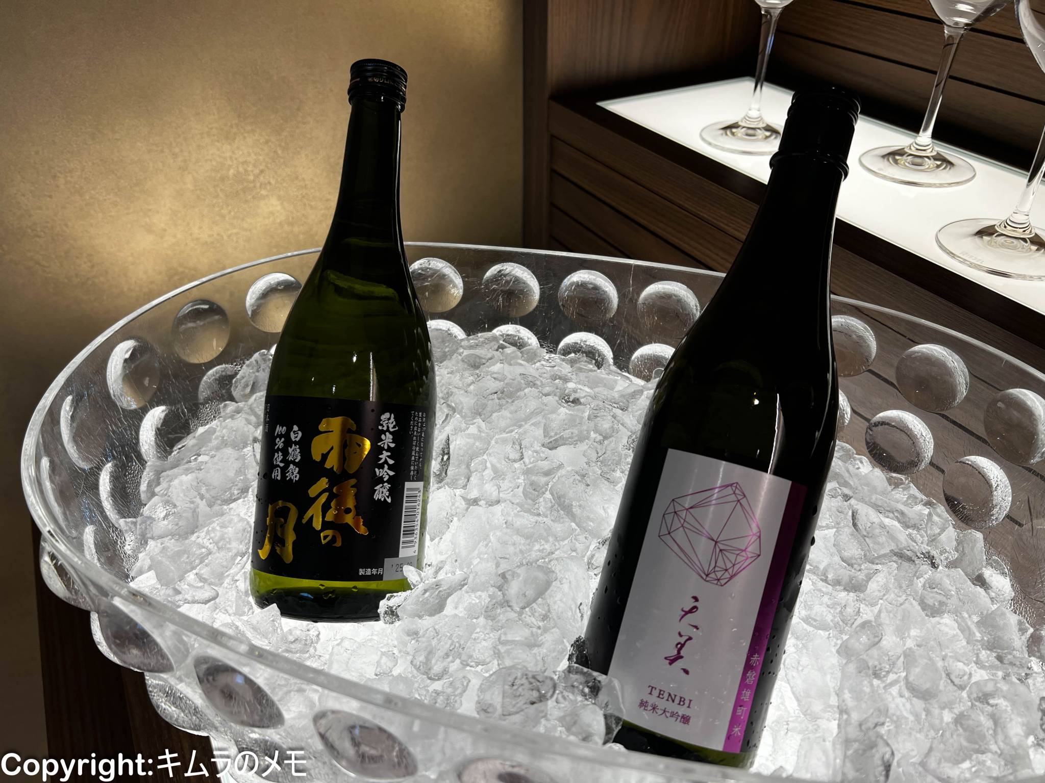 広島県の相原酒造が作る「雨後の月 純米大吟醸 白鶴錦」(市価2200円程度)と、山口県の長州酒造が作る「天美 純米大吟醸 赤磐雄町」(市価3000円程度)が用意されていた。