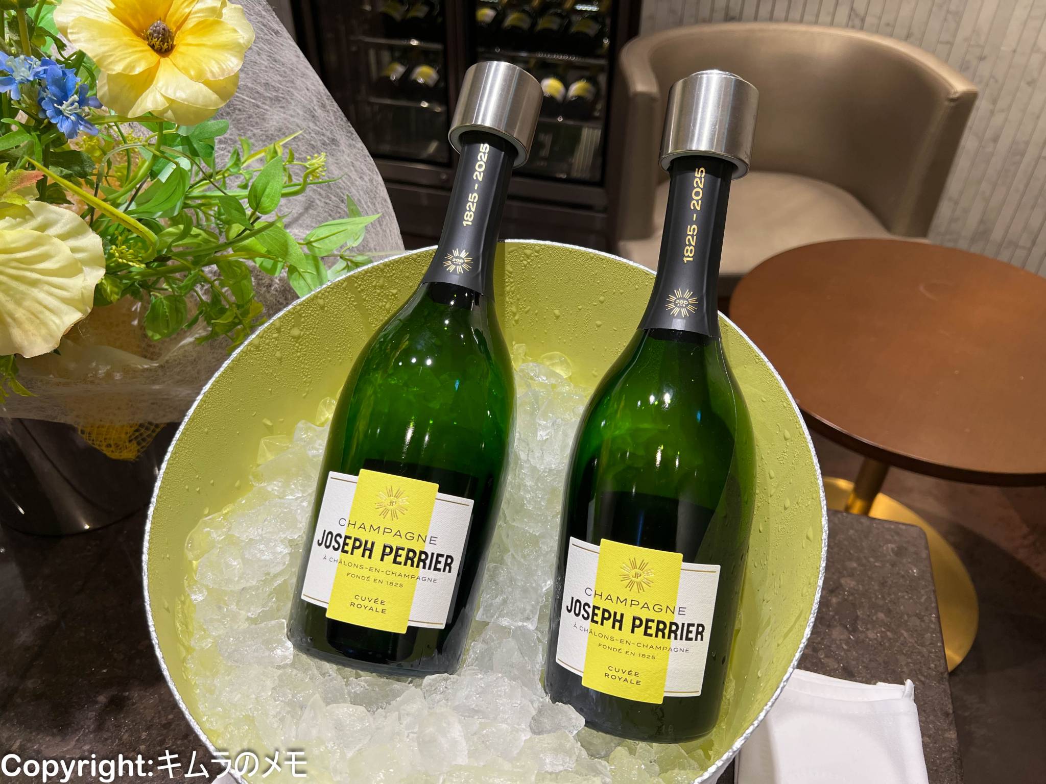 そしてダイニングコーナーの奥にある「RED SUITE」エリアではこちらのコーナー定番の「ジョセフ ペリエ シャンパーニュ ブリュット キュヴェ ロワイヤル」 (市価6000円程度)が引き続き提供されている。