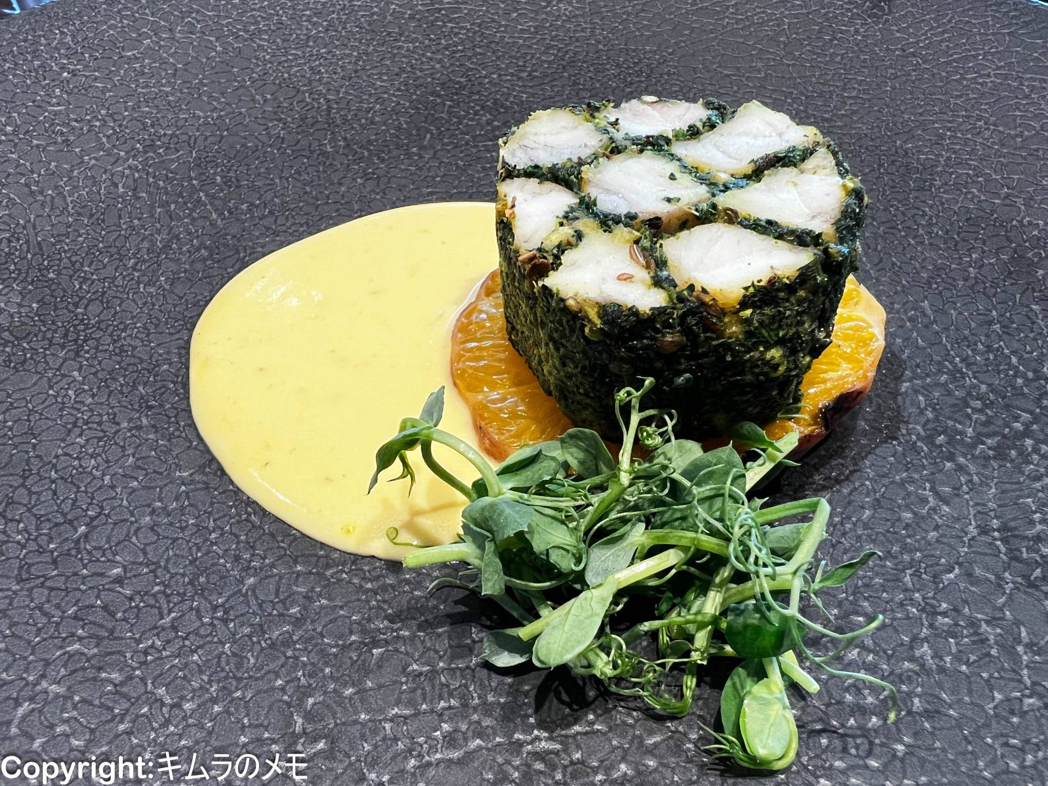 こちらがオレンジソースという名称ではあるが、フグの肉の周りにはたっぷりのクミンがまぶされており、エスニック感を楽しめる料理。