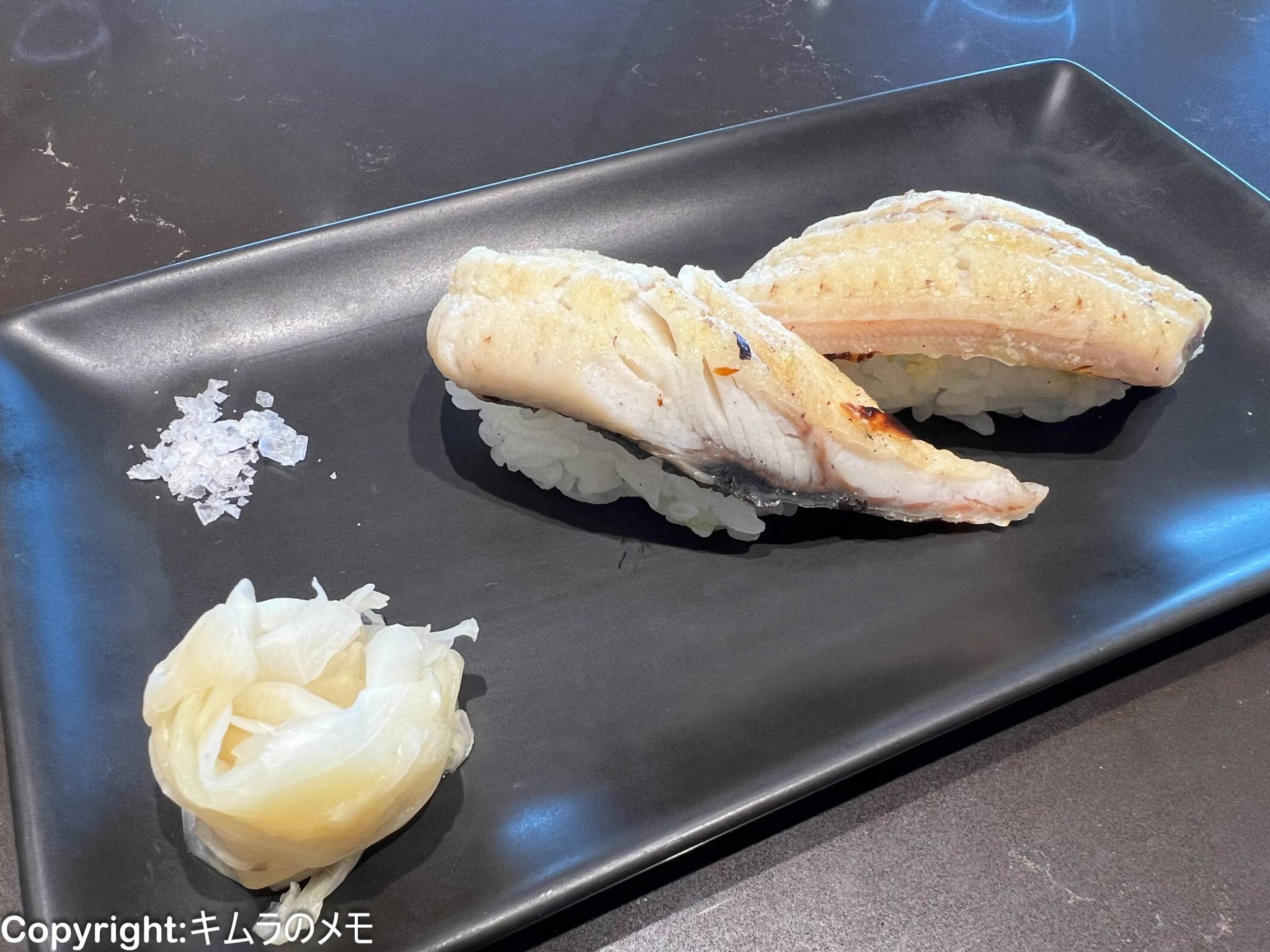 握りは常に玉子を含めて3種類用意されているのだが、この日はそれに加えて「鹿児島県産うなぎの白焼き握り」がラインナップされていた。