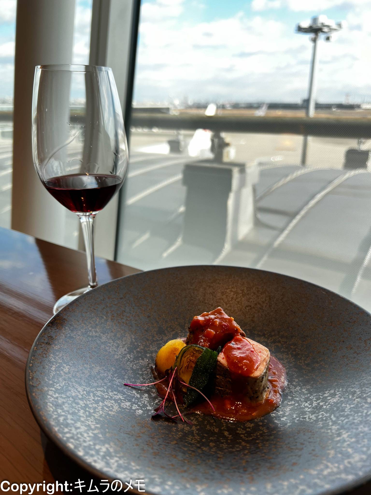 その料理とワインを合わせて滑走路を行き交う飛行機を見ながらの食事は格別。