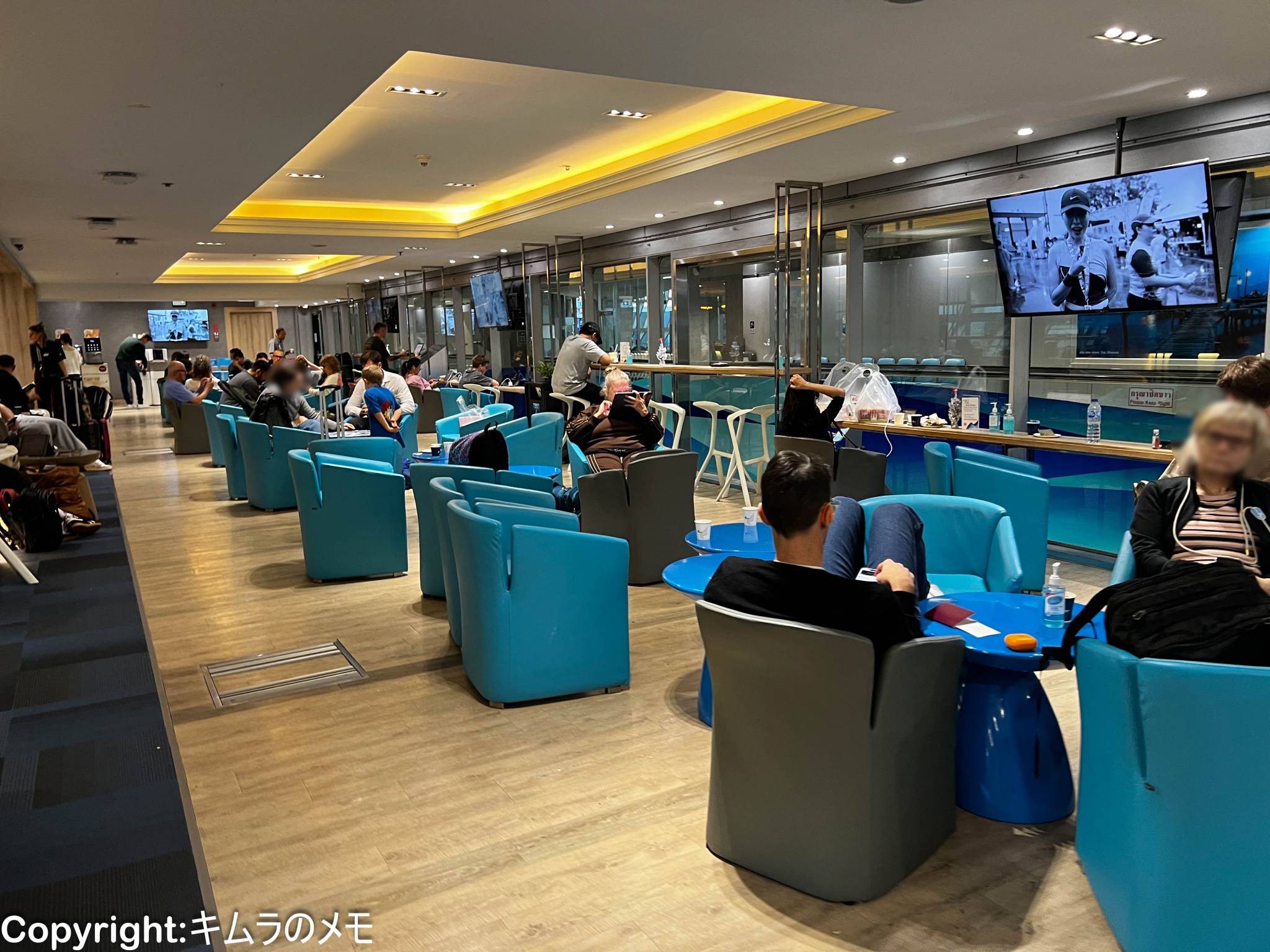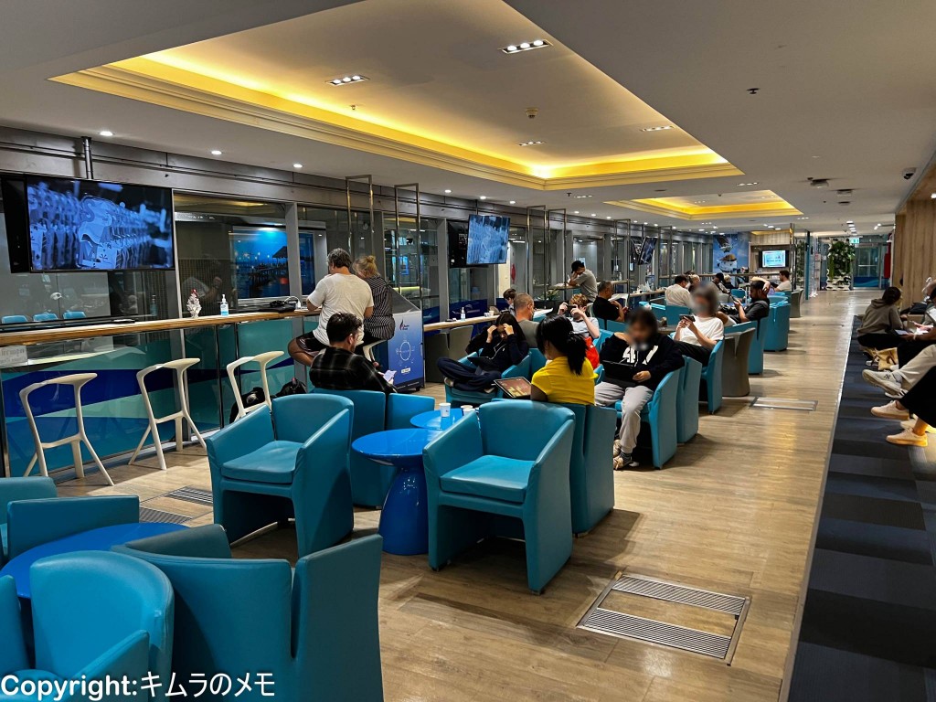 そしてラウンジ自体も、いわゆるラウンジというような寛ぐ場所というよりは、休憩所的な雰囲気となっており、ラウンジの外で席に座っているのとあまり変わらないという印象。