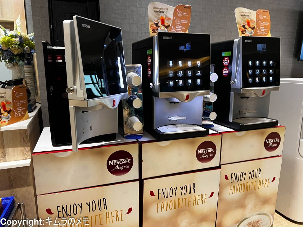 飲み物はジュースに加えてコーヒーマシンが用意されているが、アルコール類は提供されていない。
