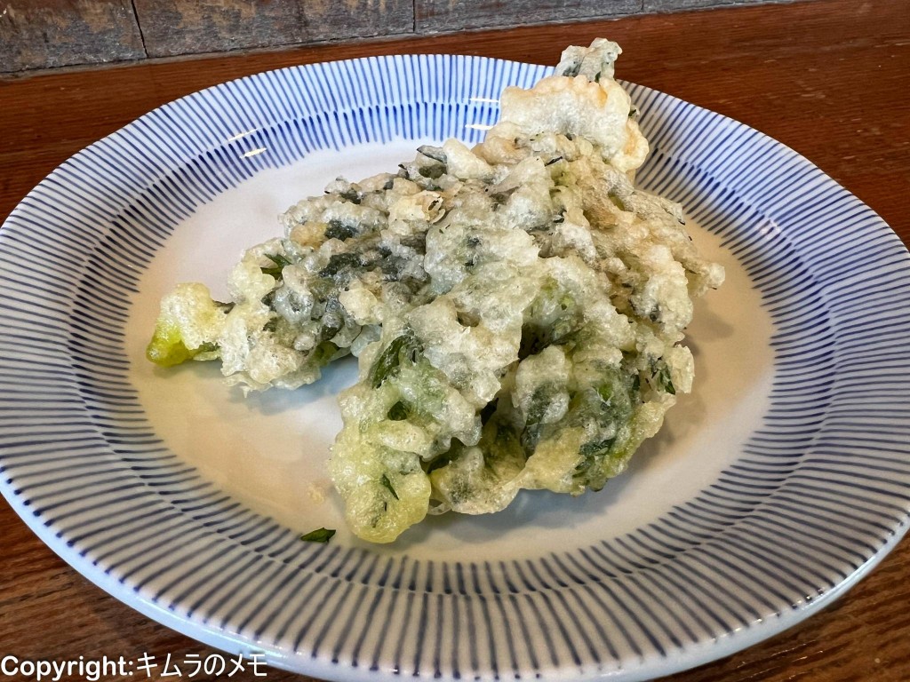 そして何となく天ぷらから「春菜(110円)」をセルフで選んだ。