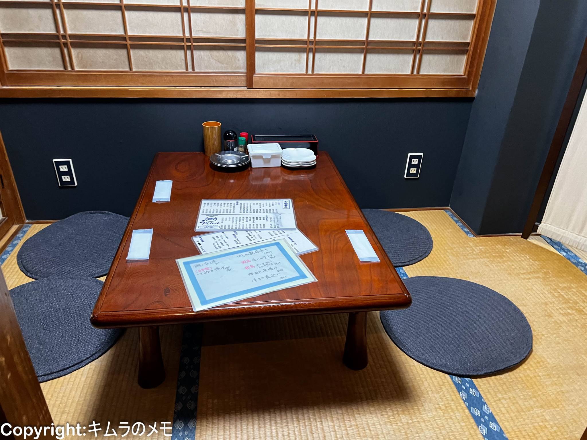 昔からあるちょっとキレイな造りの居酒屋という雰囲気で、今風のオシャレ感はないが、むしろ味のある雰囲気が心地よく感じられる。