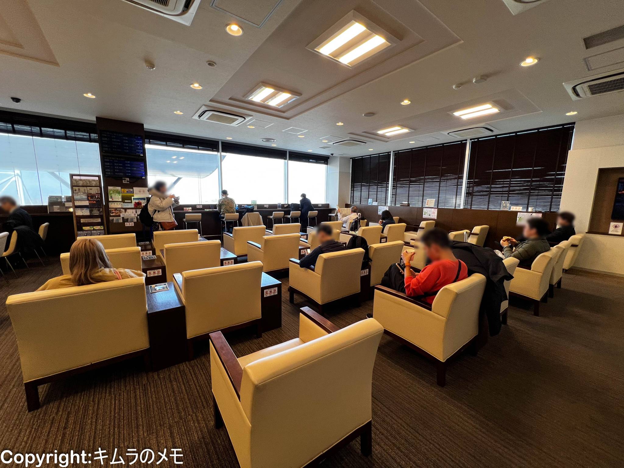 高松空港にはJALの直系ラウンジが無く、指定のクレジットカード会員が無料で使えるラウンジが制限エリア外にある。