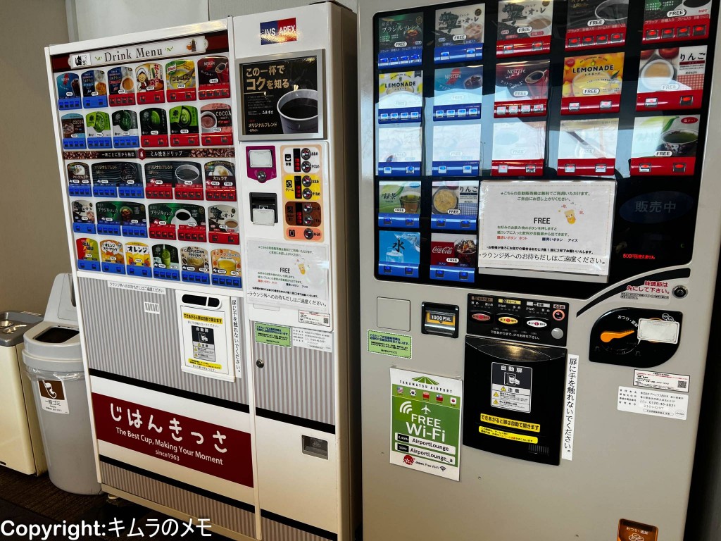 飲み物は2台のベンディングマシーンでソフトドリンクが無料で提供されている。